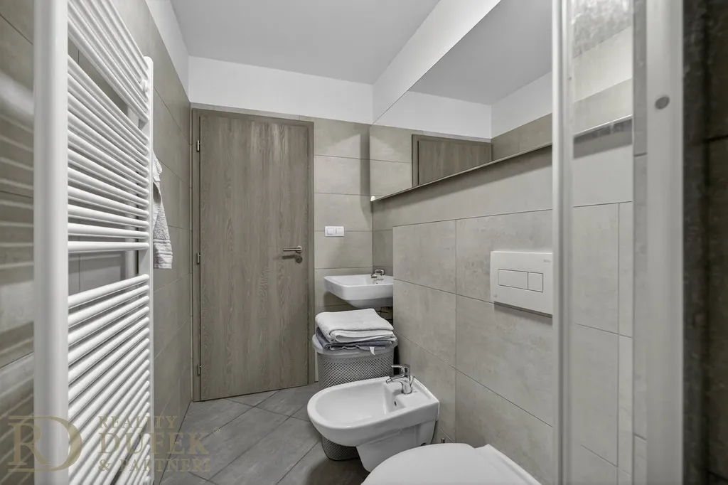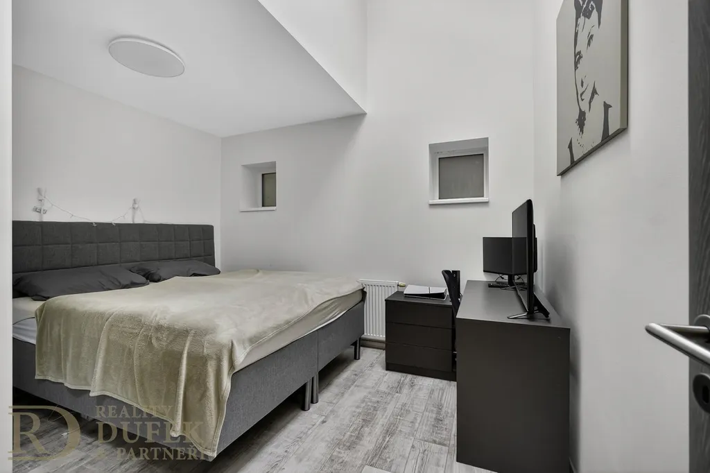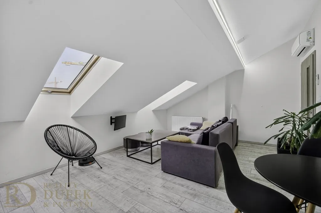 Byt se nachází v 7. nadzemním podlaží, tedy v posledním patře domu s výtahem, což přináší větší klid, soukromí a příjemnou atmosféru podkrovního bydlení. Nemovitost prošla v roce 2018 kompletní rekonstrukcí a je ve velmi dobrém technickém stavu. Dispozice nabízí obývací pokoj s kuchyňským koutem, samostatnou ložnici, koupelnu a vstupní chodbu. Komfort v letních měsících zajišťuje klimatizace.