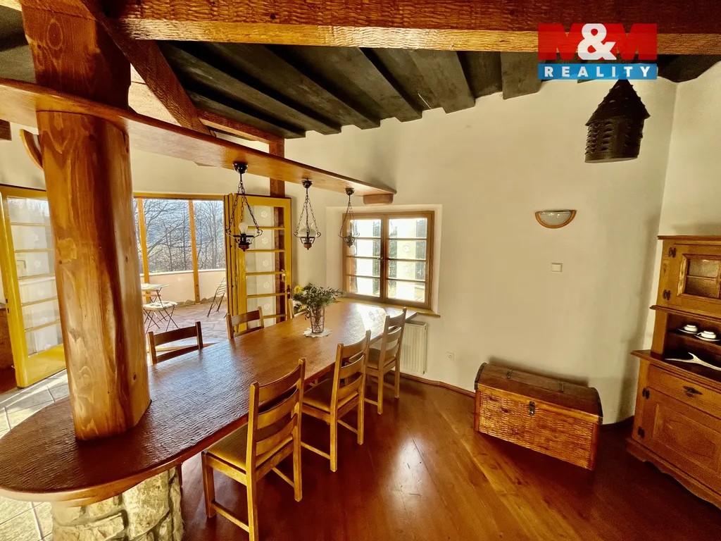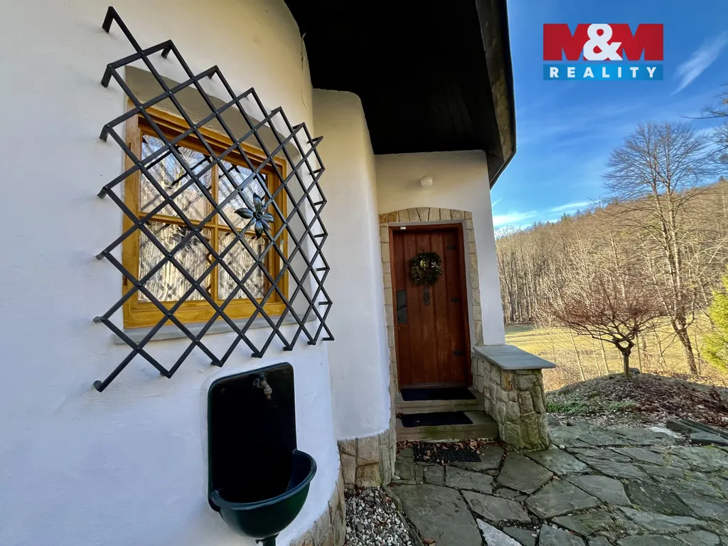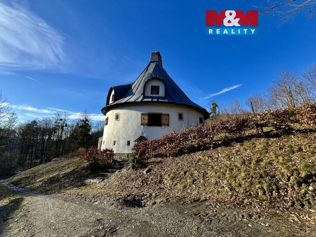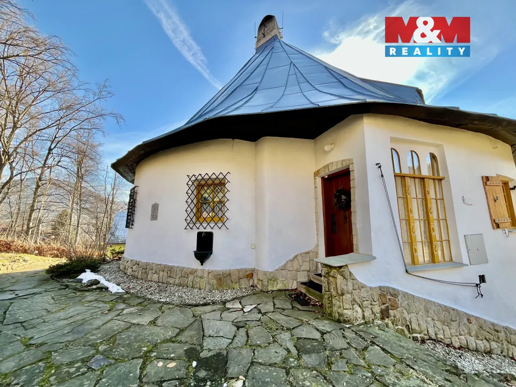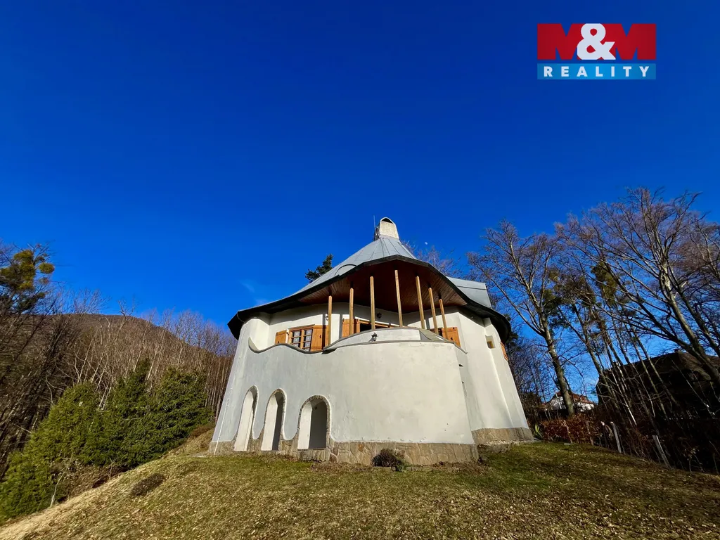 Stylový dům s jedinečnou architekturou a neopakovatelnou atmosférou v obci Kunčice pod Ondřejníkem. Výjimečná stavba z roku 1928 ve tvaru rotundy s centrálním komínem a kuželovou střechou stojí na vyvýšeném místě na konci slepé ulice, přímo u lesa, s krásným výhledem do krajiny a maximálním soukromím. V přízemí se nachází vstupní chodba, velkorysý otevřený prostor kuchyně, jídelny a obývacího pokoje s krbem a vstupem na krytou terasu, atypická ložnice, prostorná koupelna s hydromasážní vanou a samostatné WC. V patře jsou čtyři samostatné pokoje a WC. Dům je částečně podsklepen (cca 70 m²).