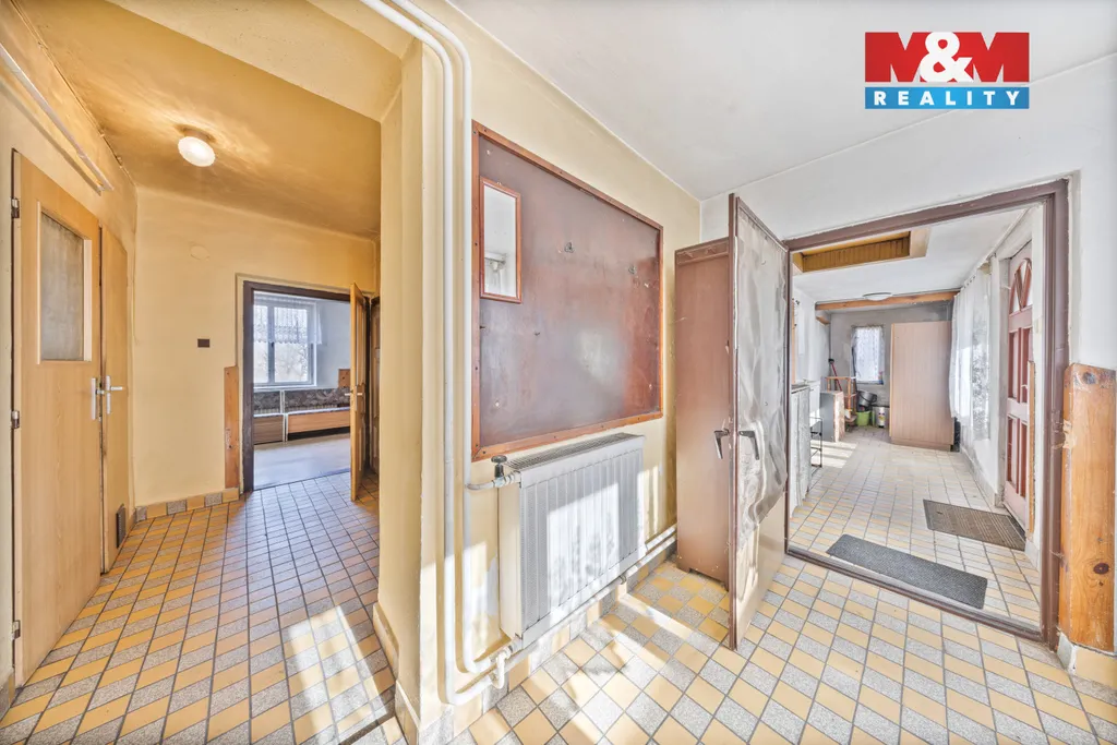 Nemovitost disponuje sklepem a velkou, vysokou půdou s potenciálem vybudování dalších obytných místností. Vytápění je řešeno kotlem na tuhá paliva.