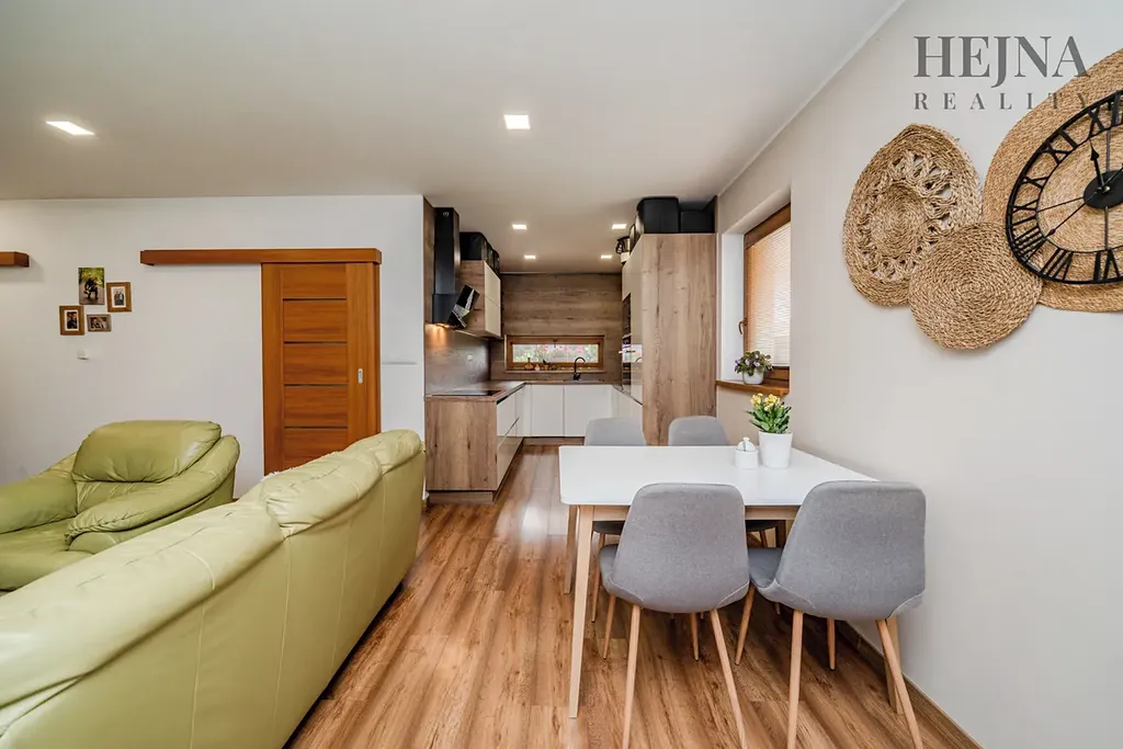 Nabízím vám ke koupi přízemní rodinný dům typu bungalov o dispozici 3+kk a užitné ploše 87,65 m², situovaný v klidné zástavbě rodinných domů v Rychvaldě. Jedná se o ideální místo pro ty, kteří hledají pohodlné, praktické a útulné bydlení s příjemným venkovním zázemím a zároveň dobrou dostupností do okolních měst. Dům působí velmi světlým a vzdušným dojmem.