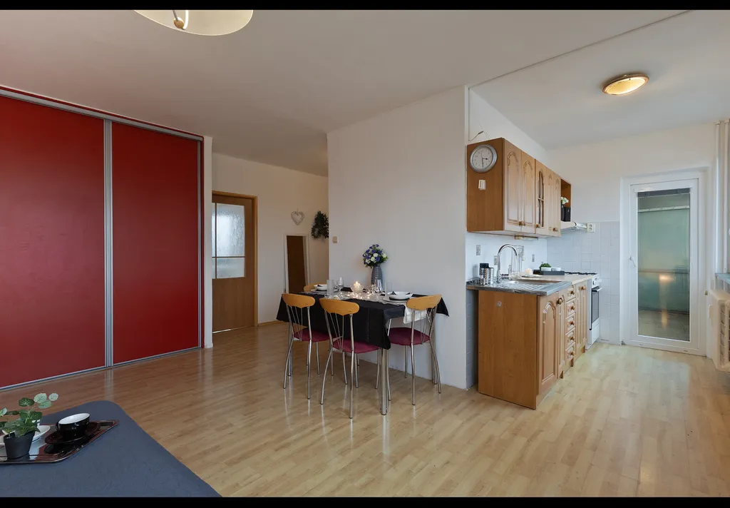 - dispozice: vstupní chodba, pokoj s kuchyňským koutem a vestavěnou skříní, 2 pokoje (jeden s druhou vestavěnou skříní), koupelna s vanou, samostatné WC