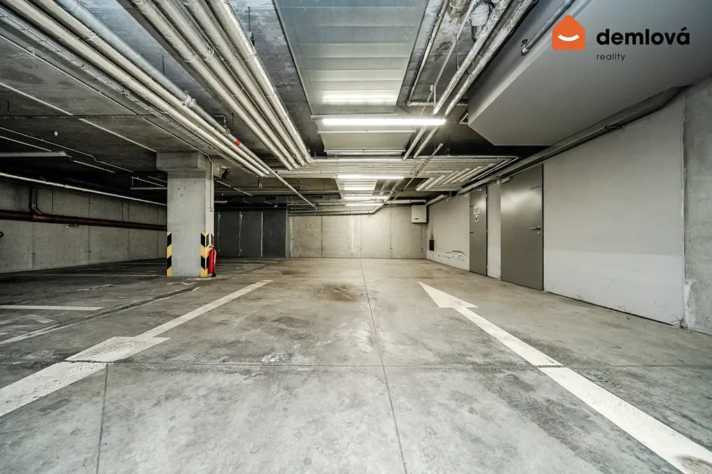 Součástí prodeje je garážové parkovací místo v suterénu domu a sklepní kóje. V domě je k dispozici je také společná kolárna.