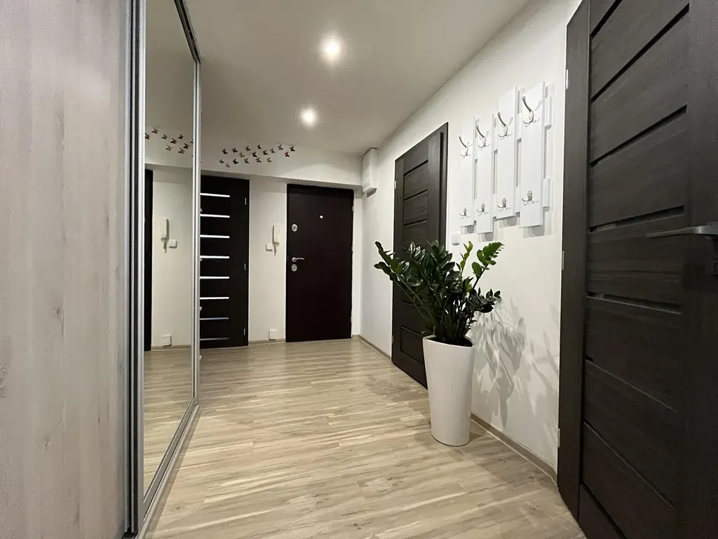 Dispozice bytu: moderní obývací pokoj s kuchyňským koutem a velkou kuchyňskou linkou, dva samostatné pokoje (z nichž jeden má praktickou šatnu), předsíň s vestavěnou skříní, koupelna s vanou a podlahovým vytápěním a samostatná toaleta s umyvadlem. V celém bytě jsou vinylové podlahy, v koupelně a na WC dlažba. Vytápění zajišťuje elektrický kotel, který umožňuje plnou kontrolu nad náklady na teplo.