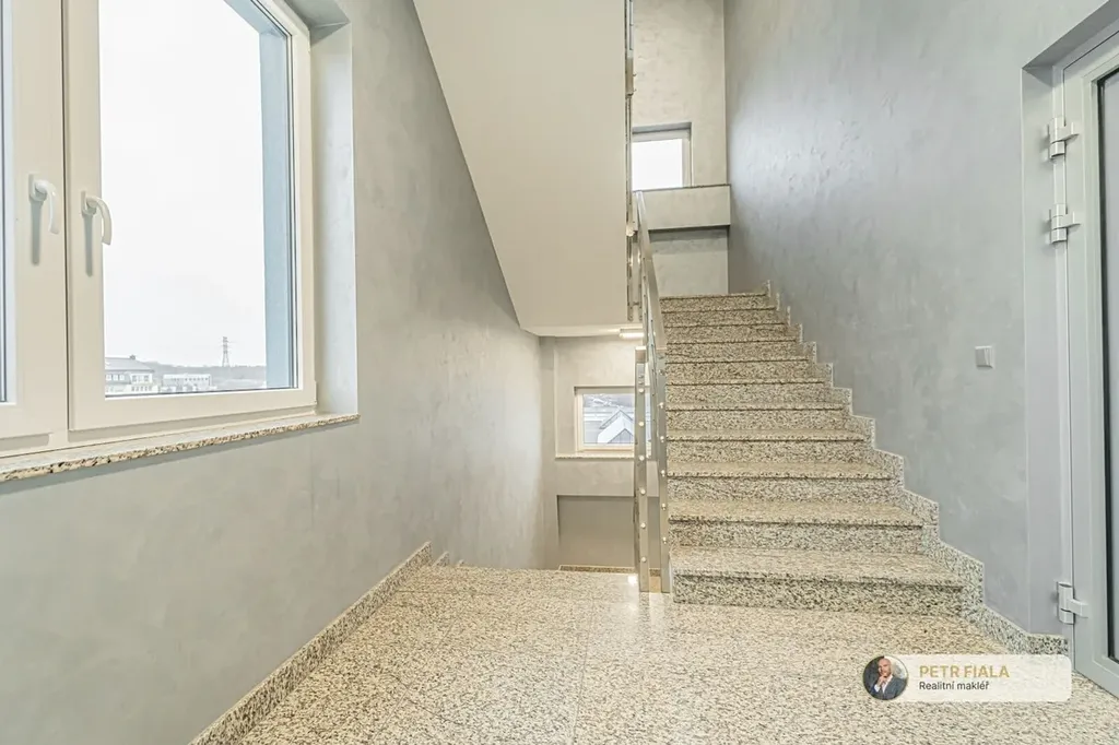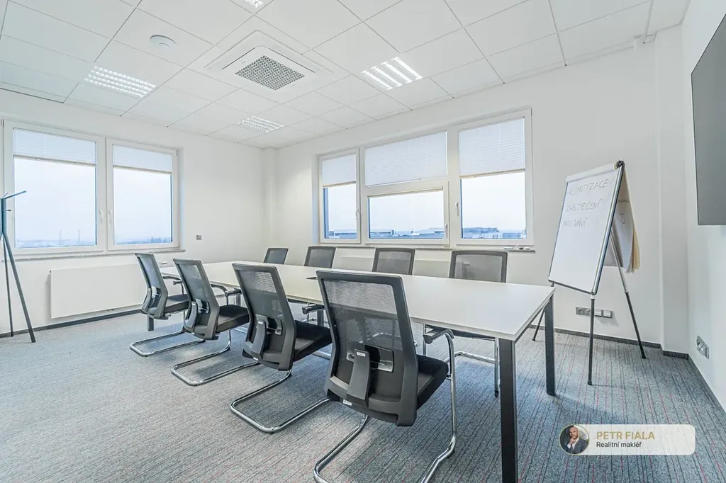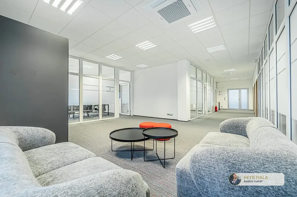 Jedná se o samostatné patro v rámci budovy s vlastním sociálním zázemím, vhodné pro firmu, která hledá dostatek prostoru a soukromí pro svůj tým. Prostor je nyní velmi zajímavě rozdělen na zasedací místnost, společenskou místnost, velkou kancelář a několik menších kanceláří.