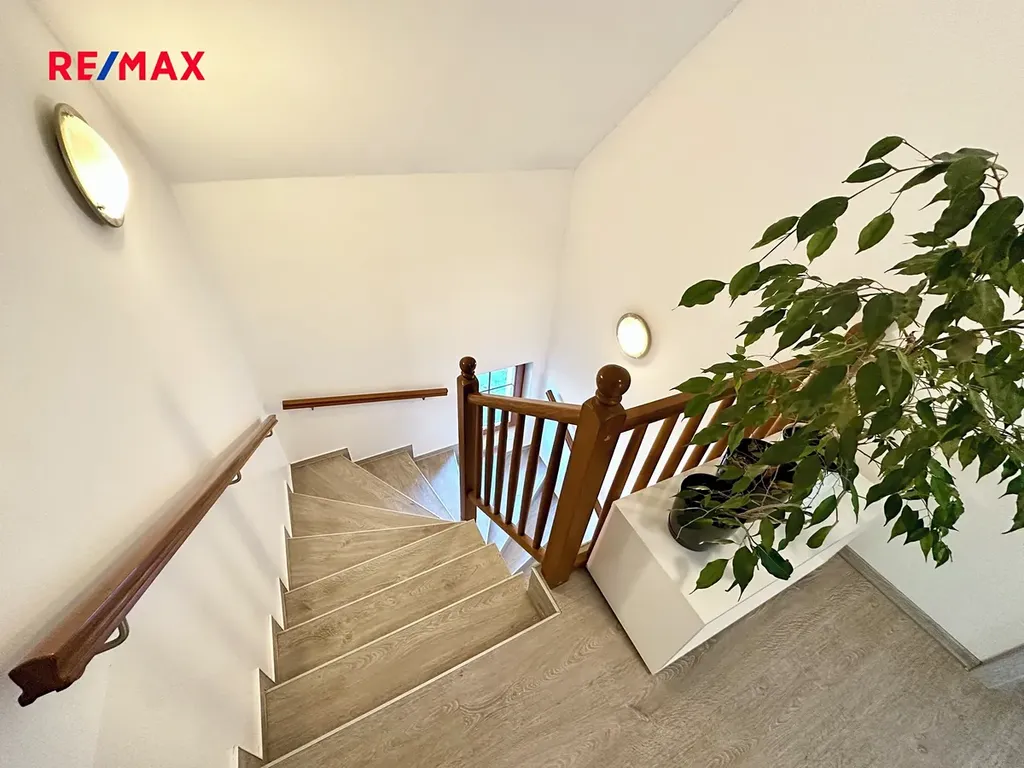 Horní patro poskytuje klidovou zónu s dostatkem soukromí, velkorysými pokoji a vlastním zázemím v podobě šaten a koupelen, vhodnou i pro vícegenerační bydlení.