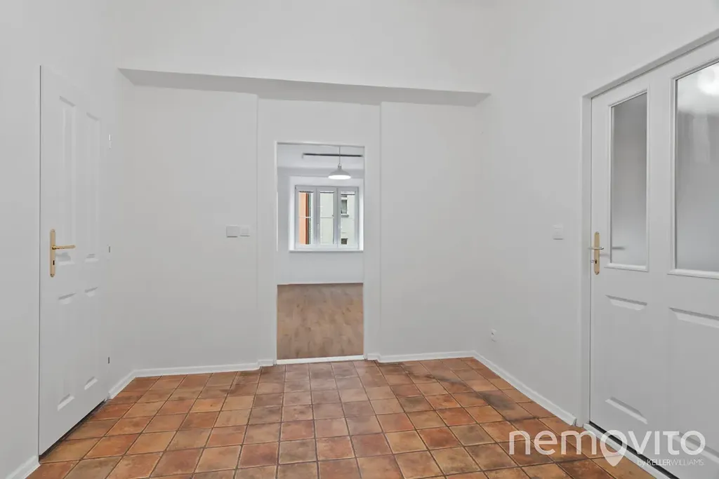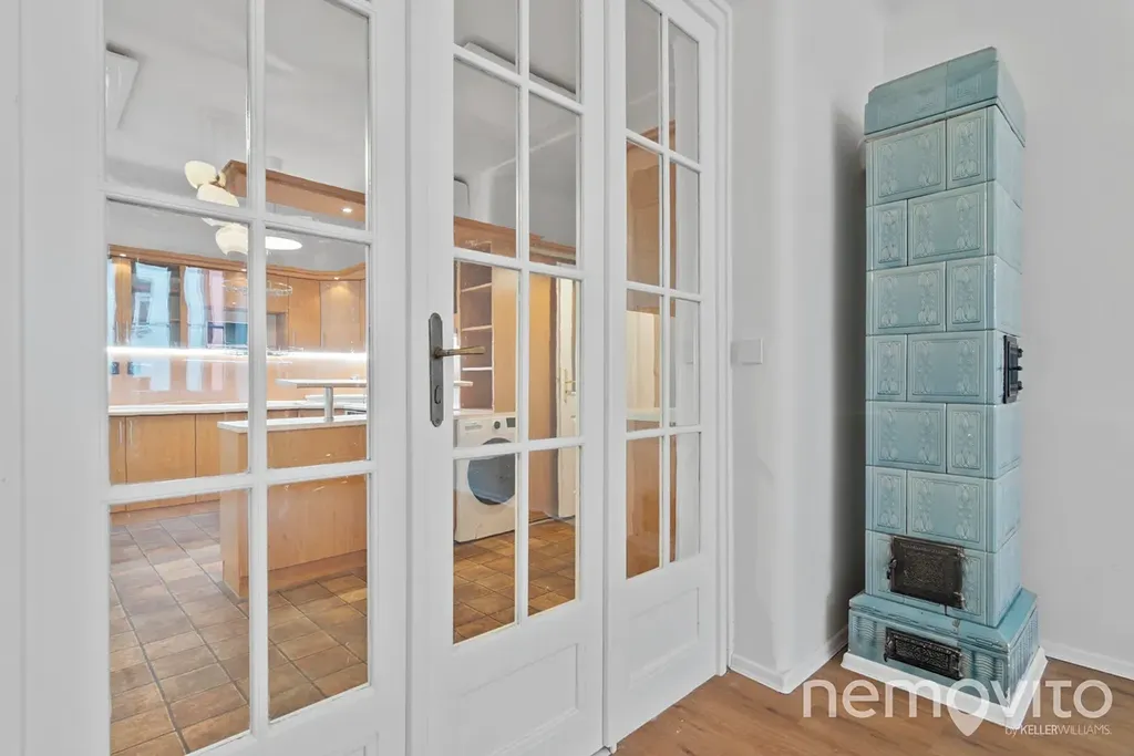 Jednotka se nachází ve 2. patře cihlového domu s výtahem a prošla rozsáhlou a citlivou rekonstrukcí, která byla realizována s důrazem na zachování původního charakteru historického domu. V interiéru tak naleznete zrenovovaná původní kachlová kamna, stylovou koupelnu a velká okna, která zajišťují dostatek denního světla ve všech místnostech.