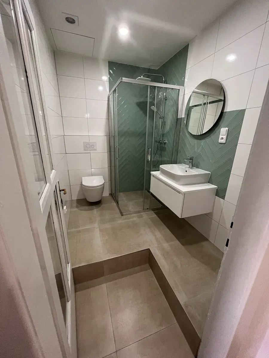 - nová koupelna s velkoformátovou dlažbou