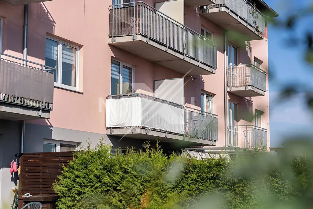 Bytová jednotka sestává z předsíně, koupelny s WC, ložnice a prostorného obývacího pokoje s kuchyňským koutem. Z obývacího pokoje vede vstup na balkón s výhledem do klidného vnitrobloku se zelenými předzahrádkami.