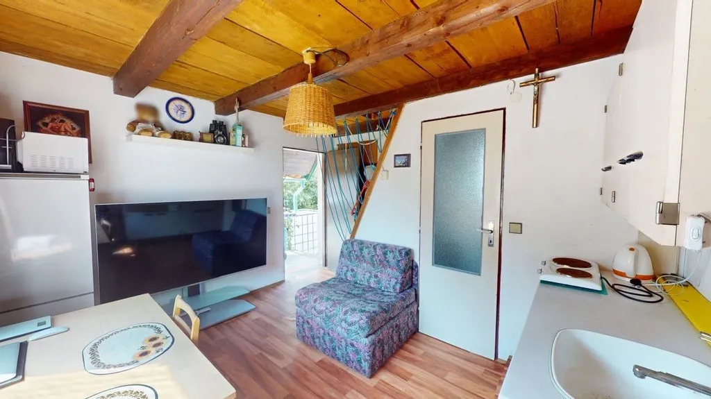Nabízíme na prodej chatu ve vyhledávané lokalitě Rabyně u Slapské přehrady 200 metrů nad vesnici. Chata stojí na vlastním oploceném pozemku. Vytápění řešeno krbovými kamny (tuhá paliva). Jsou zavedený elektřina a obecní voda, kanalizace svedena do jímky, v budoucnu plánovaná kanalizace. Dispozice - v přízemí se nachází kuchyň společně s obývacím pokojem, koupelna (bojler) se sprchovým koutem a toaletou. V patře je ložnice. Stejně jako v přízemí i v patře je okno zajišťující denní světlo a vzdušnost. Vše v dobrém stavu, kompletně zděné. Parkování pro dvě vozidla, rohový rovinatý pozemek.