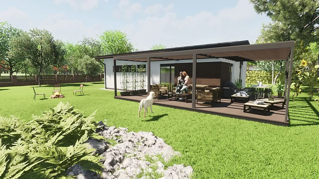 Vybavení „na klíč“ v ceně 4 490 000 Kč: Neřešíte hrubou stavbu, ale hotový domov. Cena zahrnuje projekt, stavební povolení, podlahy, obklady, sanitu, interiérové dveře i napojení na sítě.