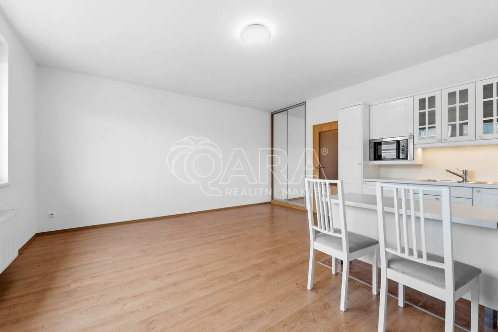 Byt 1+kk o podlahové ploše 32,8 m² + balkon o velikosti 6,9 m² se nachází v klidné části Uhříněvsi na Praze 10 v ulici U Uhříněveské obory. Je umístěn ve 4. a zároveň posledním podlaží.
