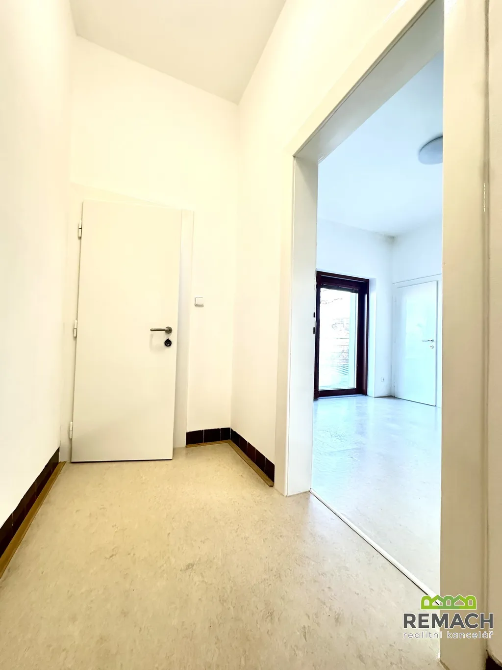 Po vstupu do bytu se ocitnete ve vstupní chodbě, odkud je přístup do jednotlivých částí bytu. Z chodby se vstupuje do obývacího pokoje, který je průchozí do ložnice, což vytváří příjemný obytný celek. Na chodbě se dále nachází samostatné WC a vstup do kuchyně, ze které se pokračuje do technické místnosti a prostorné koupelny vybavené jak sprchovým koutem, tak vanou.