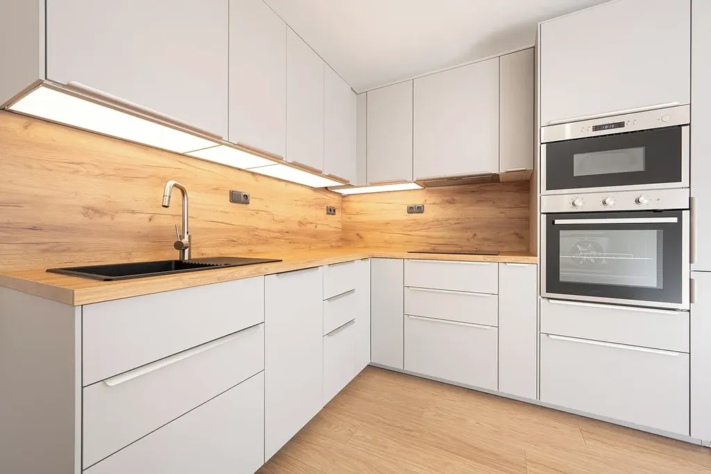 - vše v bytě je nové – elektrické rozvody, omítky, podlahy, dveře i veškeré vybavení kuchyně a koupelny