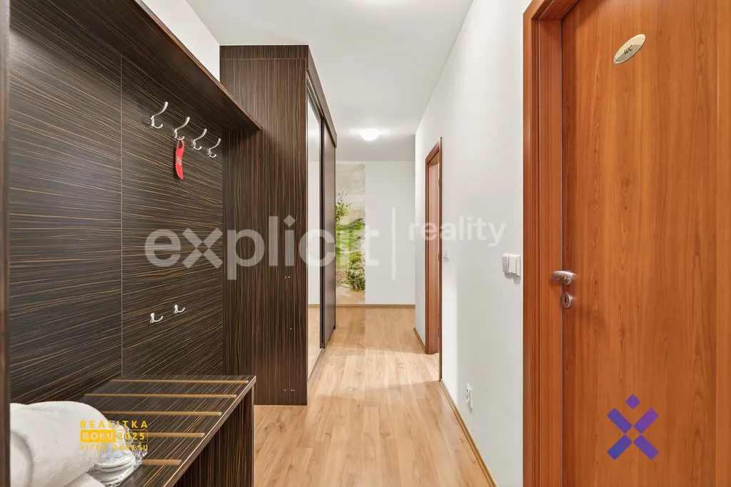 Byt se nachází ve třetím podlaží, které poskytuje dostatek soukromí a klidné prostředí. Dispozice je řešena prakticky a přehledně. Vstupní chodba tvoří centrální komunikační prostor, ze kterého se vstupuje do všech místností, tedy do kuchyně, ložnice i obývacího pokoje. Z obývacího pokoje je dále přímý vstup na balkon. Jednotka je orientována na severovýchod, což zajišťuje příjemné světelné podmínky bez nadměrného přehřívání v letních měsících.