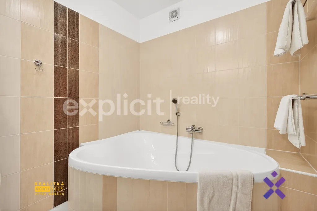 Součástí bytu je zděná koupelna se sprchovým koutem a toaletou. Ve vstupní chodbě se nachází vestavěné skříně, které nabízejí dostatek úložného místa.