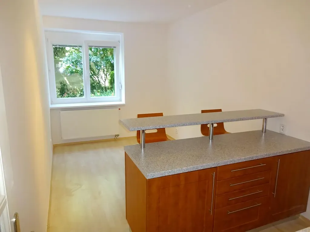 Pěkný nezařízený byt 1+1, 45 m2, po rekonstrukce, se nachází ve zvýšeném přízemi cihlového domu bez výtahu. Plastová okna v bytě jsou orientovaná na jihozápad. Kuchyňská linka je vybavena novou elektrickou varnou deskou a malou lednicí. Prostorná koupelna je vybavená sprchovým koutem a umyvadlem. V předsíni je vestavena skříň. Na podlaze je plovoucí podlaha a dlažba. Topení a ohřev teple vody v bytě zajišťuji elektrický kotel . V tomto místě je maximální občanská vybavenost - škola, školka, služby, restaurace, obchody a další. Výborné je také dopravní spojení do centra a ostatních částí města. Nájem činí 15.300 Kč + 630 Kč/os. zálohy na služby + elektřina bude napsaná na nájemníka . Tento pěkný byt je pro Vás od 15. 3. 2026.