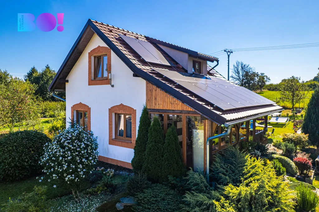 Fotovoltaika má výkon 10 kWp a bateriové úložiště kapacitu 20 kWh, měsíční náklady na provoz energií domu neuvěřitelně nízké - 3000 Kč / měsíčně.