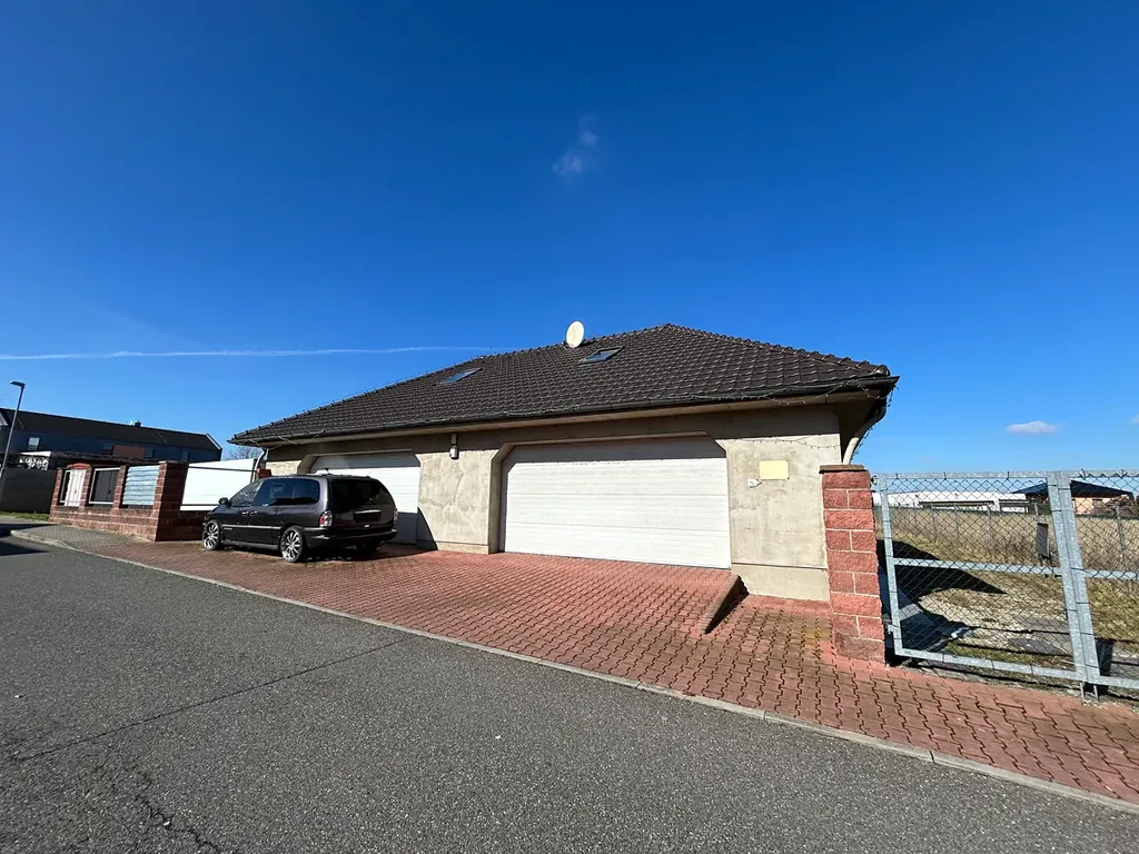 V přední části pozemku prodávané nemovitosti se nachází druhý menší objekt kde se nachází garáž (120 m2) pro 4–6 aut a patře obytný prostor pro hosty či podnikání (75 m2). Patro menšího domu dostavěno. Zde se nachází obývací pokoj s odděleným spacím koutem, kuchyň s kuchyňskou linkou, koupelna a chodba.