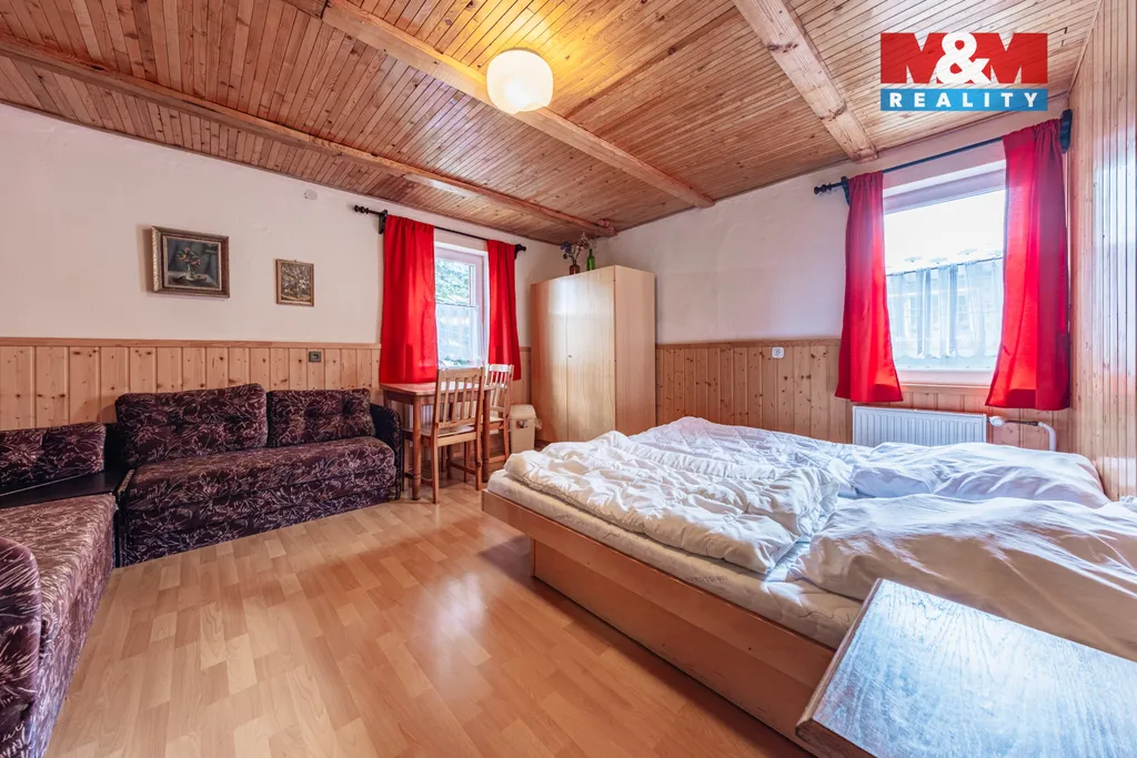 Nabízím k prodeji chatu v Loučné pod Klínovcem v části obce Háj. Chata je aktuálně provozována jako ubytovací zařízení a je zde plně obsazeno až do května. Tudíž je zde velký potenciál v podnikatelském záměru v jedné z nejvyhledávanějších lokalit v Krušných horách. Chata patří mezi nejlépe hodnocené ubytování v okolí. V těsné blízkosti se nachází vyhledávaná lyžařská střediska Klínovec a Oberwiesenthal. Vyžití je zde nejen v zimním období, ale i v letním období pro turistiku, cyklistiku a sportovní areály. Chata se skládá ze sedmi ložnic ve dvou patrech, kde na chodbě je vždy společné sociální zařízení. Z toho je 1 ložnice s vlastním sociálním zařízením a 1 apartmán se dvěmi ložnicemi má také vlastní sociální zařízení. V přízemí je společenská místnost a privátní apartmán s vlastním sociálním zařízením. K chatě náleží pozemek o rozloze 1281 m2, který se dá využít pro ubytované hosty. Chata má číslo evidenční. Neváhejte a zavolejte si o prohlídku. S financováním můžeme pomoci.