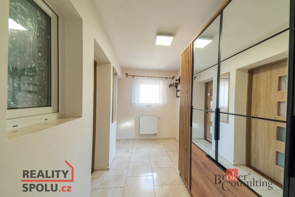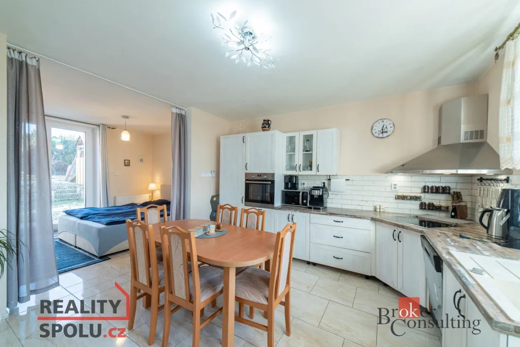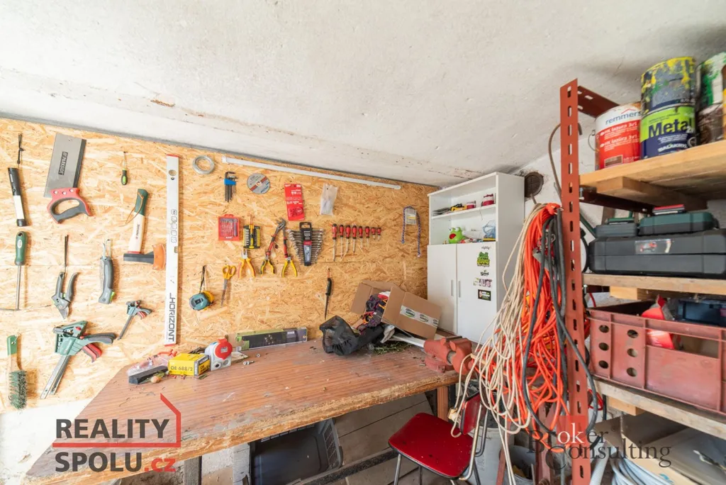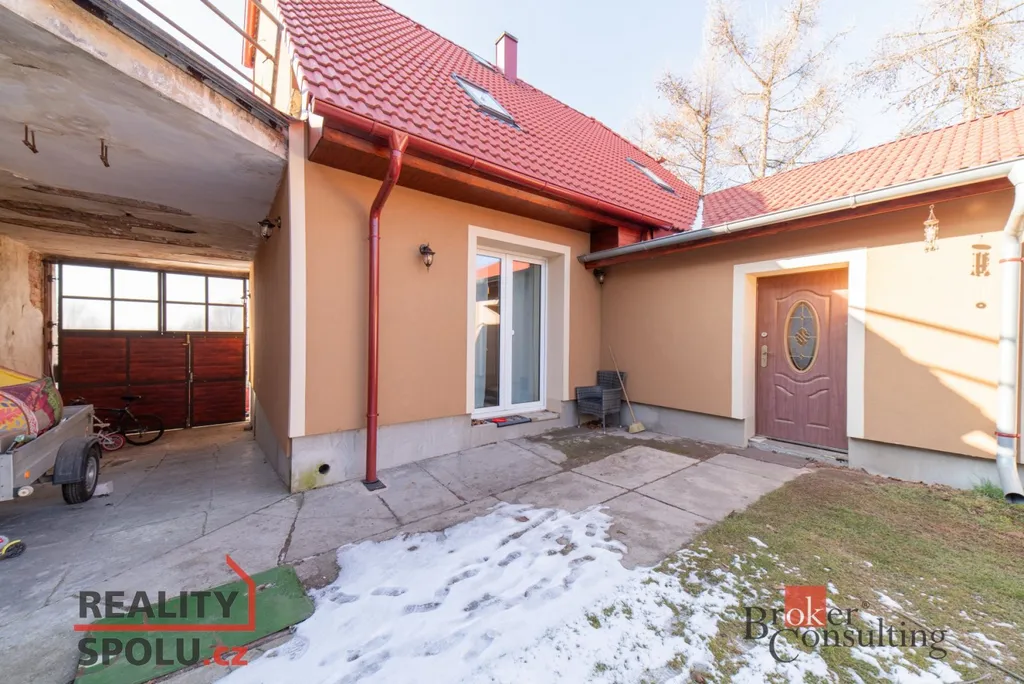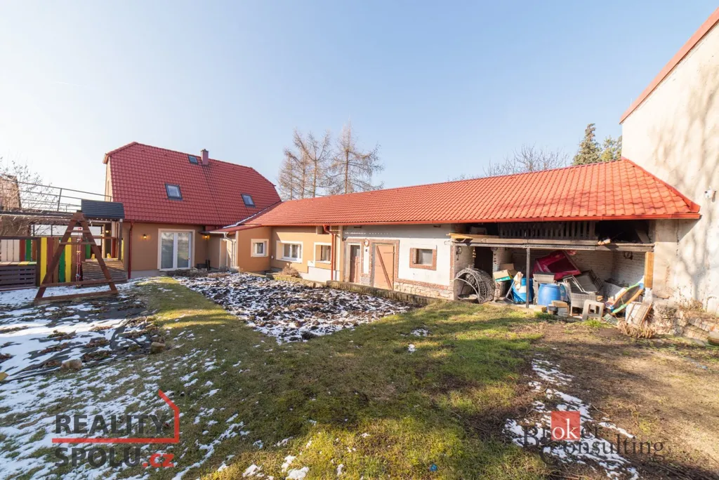 K nemovitosti náleží zahrada o velikosti 124 m², kde je umístěna klouzačka a dostatek prostoru pro hraní i odpočinek. Na dvůr lze pohodlně vjet velkými vraty, což usnadňuje parkování i manipulaci s materiálem. K dispozici je také dílna pro kutily. Objekt je napojen na elektřinu 220 V, veřejný vodovod a kanalizaci, zároveň má vlastní studnu. Ústřední vytápění na pevná paliva zajišťuje kombinovaný kotel, ohřev vody obstarává bojler. Střešní krytinu tvoří betonová taška a kolaudační řízení je již podáno na stavební úřad. Orientace na východ, jih a západ zajišťuje dostatek denního světla.
