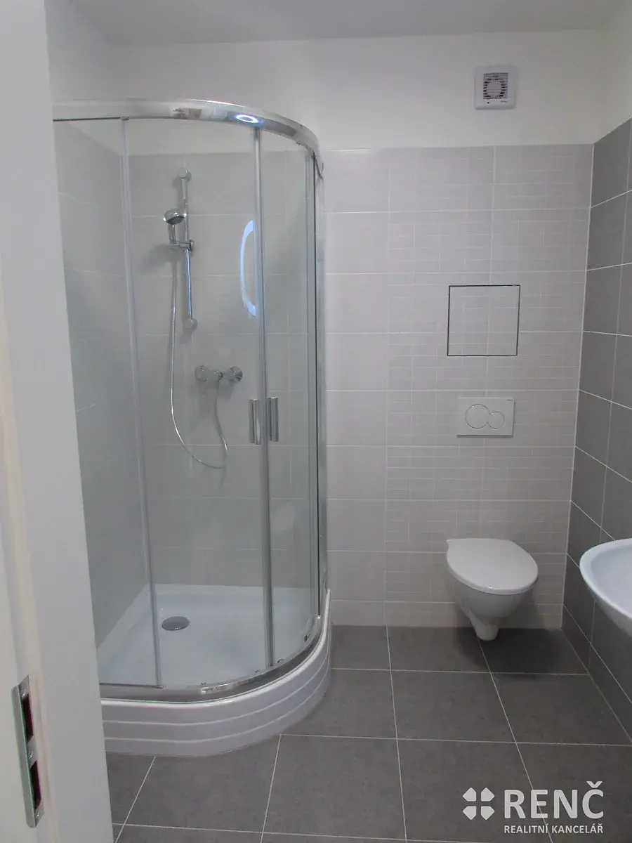 Koupelna se sprchovým koutem je společná s WC.