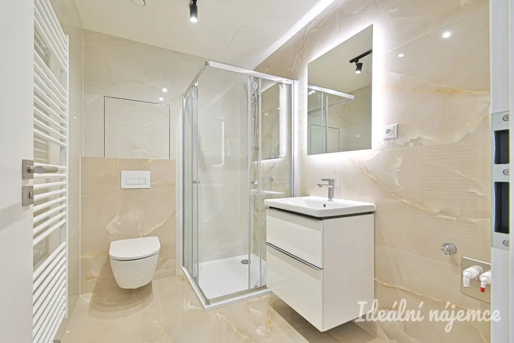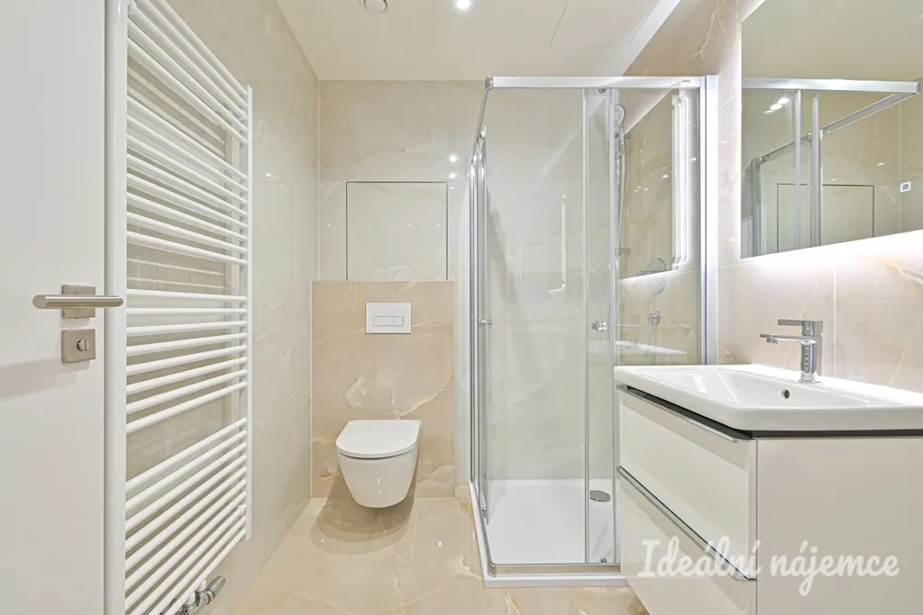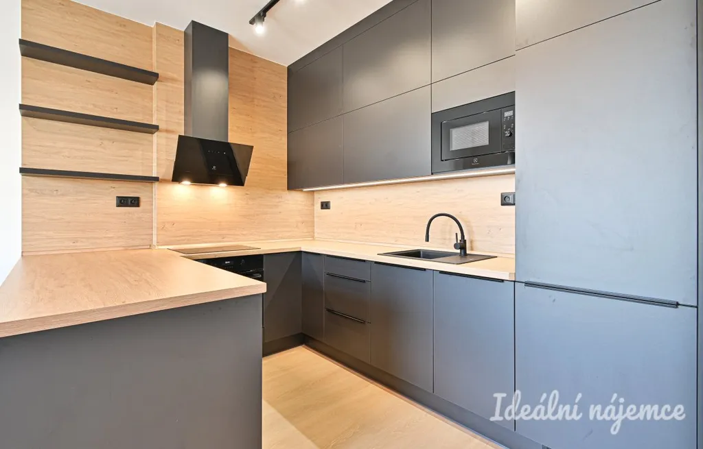 Dispozice je ideální pro jednotlivce nebo pár: obývací pokoj s kuchyňským koutem nabízí dost místa pro jídelní stůl i relaxační zónu, samostatná ložnice poskytne klid a soukromí. Byt je nevybavený, takže si ho můžete zařídit přesně podle svého stylu – od minimalistického po útulný „home office“ koncept. Moderní kuchyňská linka je zařízena veškerými spotřebiči jako lednice s mrazákem, mikrovlnná trouba, trouba, varná deska, digestoř a myčka. Ložnice je vybavena vestavěnou skříní. Koupelna je zařízena sprchovým koutem, umyvadlem se skříňkou a toaletou. Velkou výhodou bytu je praktická komora.