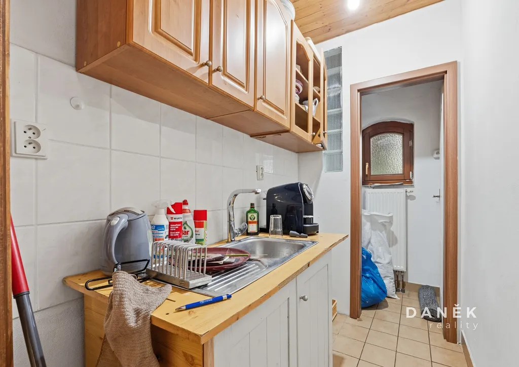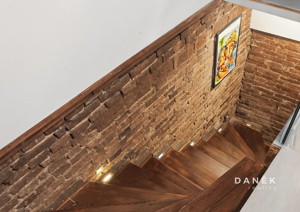 Z chodby je zároveň přístup do původního sklepa o ploše 20 m² s kamennými základy, které výrazně podtrhují historický charakter celé nemovitosti a vytvářejí autentickou atmosféru typickou pro původní městské domy.