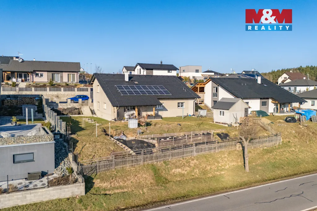 Hledáte místo, kde budete mít klid, prostor i pocit skutečného domova? Tento samostatně stojící dům na okraji obce Všeruby u Plzně vám nabídne přesně to. Novostavba o užitné ploše 188 m² stojí na krásném pozemku o velikosti 906 m², který poskytuje dostatek soukromí i prostoru pro rodinný život. Dům je napojen na vodovod a kanalizaci, vytápění zajišťuje elektrické podlahové topení, doplněné sálavým krbem, který v zimě vytvoří útulnou atmosféru. Na střeše jsou solární panely pro úspornější provoz. Dispozice 5+kk je prakticky řešená. V přízemí se nachází obývací pokoj s kuchyní a vstupem na zahradu, dva pokoje, technická místnost s kuchyňkou, koupelna se sprchovým koutem, toaleta. V patře jsou dva pokoje, koupelna s vanou a toaletou. Nízké náklady na bydlení, PENB A. Nechybí kryté stání pro dvě auta, zahradní domek s dřevníkem, zeleninová zahrádka ani okrasná část zahrady. Obec Všeruby poskytuje veškerou občanskou vybavenost, Plzeň 10 minut autem. Doporučujeme prohlídku.