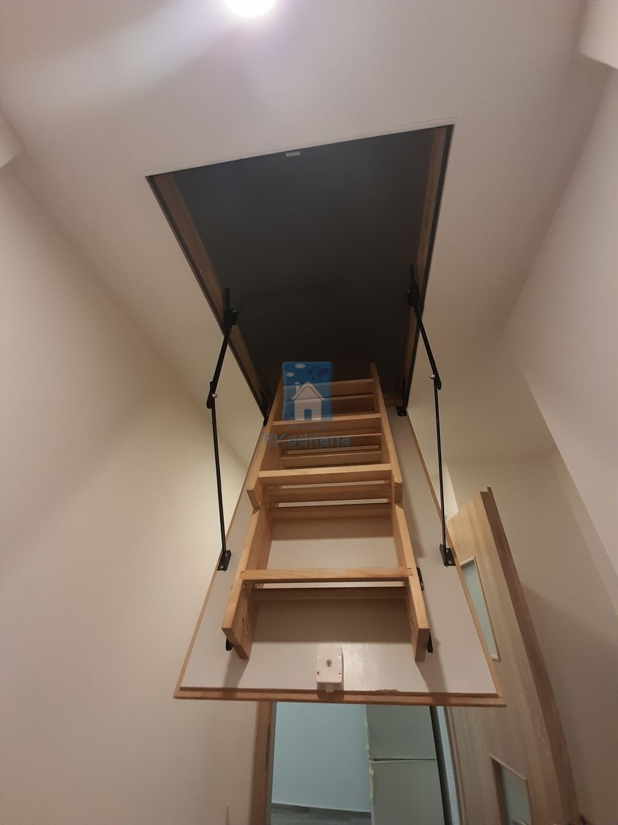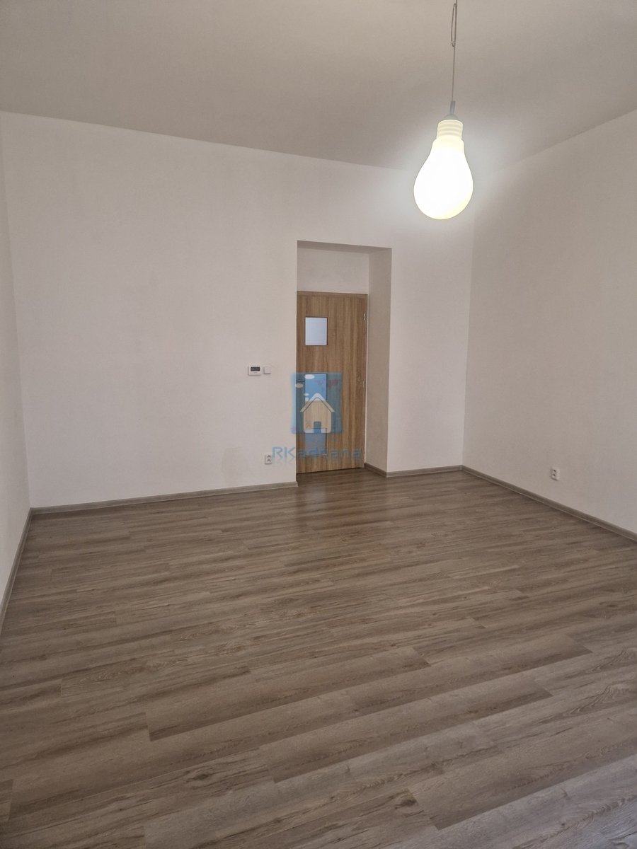 Obývací část je přístupná z kuchyně a není vybavena žádným nábytkem spolu s další oddělenou místností, kde podlahová krytina je světlá plovoucí podlaha.