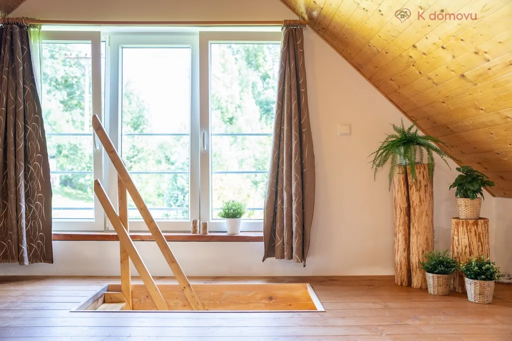 V přízemí je krásná obytná místnost s kuchyní a koupelna s toaletou, krbová kamna a vstup na slunnou terasu. V podkroví je velká otevřená místnost, kterou lze využít jako ložnici nebo pracovnu. Vytápění je dostatečné krbovými kamny a v koupelně je podlahové topení s termostatem, ohřev vody je vyřešen elektrickým bojlerem. Je zde nádrž na 2000 litrů pro užitkovou vodu, pitná voda zde není, kanalizace je řešena nádrží s trativodem. Chata má vlastní přípojku elektřiny. Přístup k objektu je po zpevněné komunikaci, parkování je zajištěno pro 2 auta přímo u chaty. Součástí prodeje jsou dva pozemky cca 700m2 + cca 2257m2 o celkové výměře 2 957 m2, jsou zde ovocné stromy jako jabloně, třešeň, švestky a další. Na protějším pozemku cca 700m2 se nachází obytná buňka do které je přivedena elektřina a lze ji po opravě využít jako dílnu, sklad, ateliér nebo další místo pro spaní. Nemovitost lze financovat hypotečním úvěrem, protože chata má evidenční číslo. Uvedená cena je včetně provize RK.