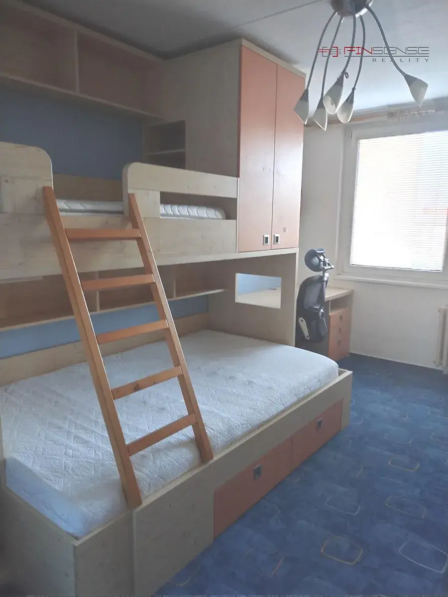 Nabízíme k dlouhodobému pronájmu byt 3+1 se zasklenou lodžií s výhledem do zeleně o celkové výměře 78m2 ve 2. nadzemním podlaží panelového domu ul. Mládežnická, Kladno - Rozdělov. Byt je vybavený - kuchyňská linka se všemi spotřebiči (bez lednice) + jídelní kout, obývací pokoj s policovou stěnou, kompletní zařízení v dětském pokoji a ložnici. V chodbě je šatní skříň, odkládací stěna, botník. Koupelna s vanou, toaleta samostatná. Na podlahách PVC, dlažba, v pokojích koberce. Dispozičně má byt velmi dobré řešení, pokoje neprůchozí, velkou chodbou oddělena část společná (kuchyně, obývací pokoj) od dalších dvou pokojů. Nové rozvody s jističi jsou v rámci jádra (vyzděné) a kuchyně. Okna plastová se žaluziemi.