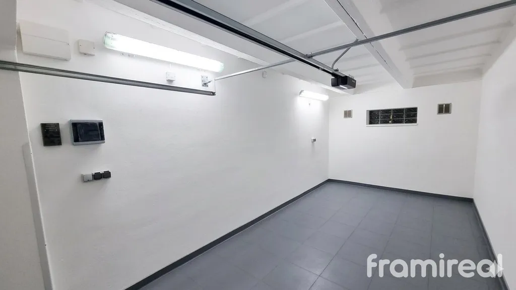 Interiér garáže o rozměrech 2,8 m x 6 m nabízí čisté, suché a světlé prostředí s novou výmalbou a výkonným LED osvětlením. Podlaha je osazena vysokozátěžovým modulárním systémem, který je protiskluzový, chemicky odolný a snadno udržovatelný. Bezpečnost celého prostoru zajišťuje vlastní alarm Jablotron s ovládací klávesnicí a signalizací stavu přímo uvnitř garáže. Kompletně nová je také elektroinstalace, která zahrnuje vlastní rozvaděč s elektroměrem a zásuvky na 230 V.