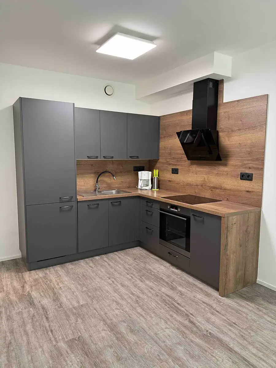 Součástí vybavení je kvalitní kuchyňská linka, úložný prostor v koupelně, plisé stínící žaluzie a nadstandardní vinylová podlaha s V-spárou a zesílenou nášlapnou vrstvou.