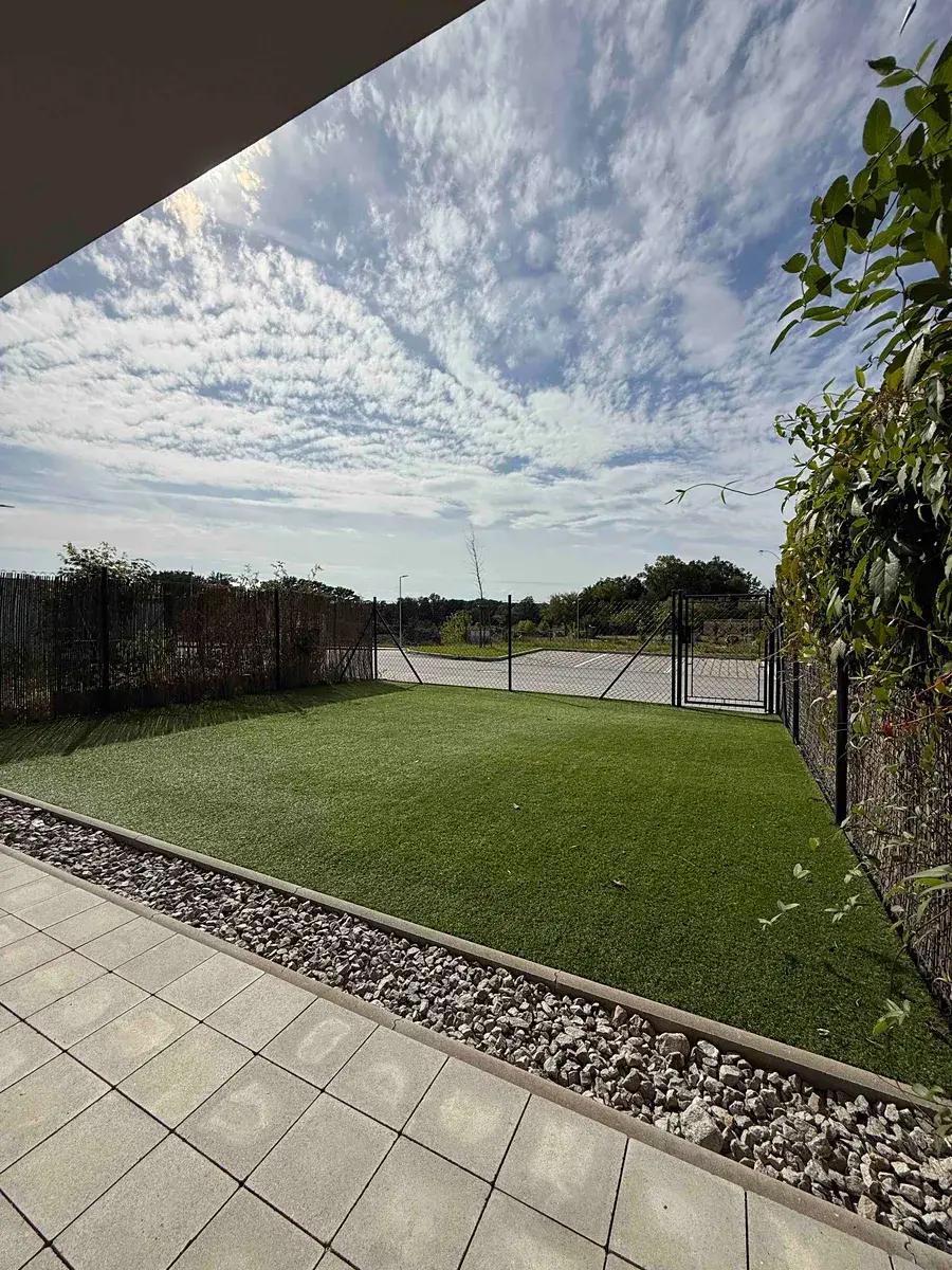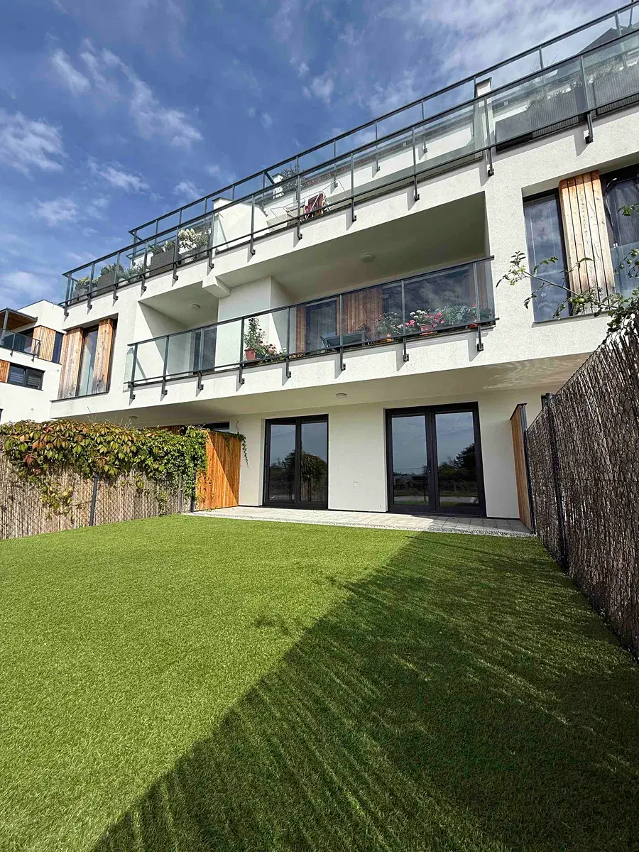 Byt disponuje prostornou terasou (12,44 m²) a vlastní předzahrádkou o rozloze 41 m² s uzamykatelným vstupem přímo z bytu. Zahrádka je upravena umělým trávníkem a nabízí ideální prostor pro relaxaci i soukromí.