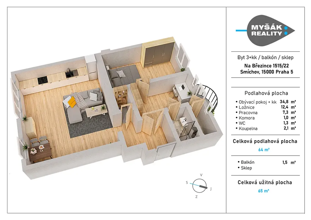 Nabízíme k prodeji byt o lehce netradiční dispozici 3+kk s balkonem, který se nachází v klidné rezidenční části Prahy 5 – Smíchov, v ulici Na Březince. Lokalita nabízí příjemné bydlení s výbornou dostupností do centra města a zároveň si zachovává typickou atmosféru starého Smíchova. Jedná se o místo, které je dlouhodobě vyhledávané pro kombinaci klidného prostředí a dobré dopravní dostupnosti. Celkové parametry bytu jsou následující 63,5 m² obytná plocha, 1,5 m² balkón a 6 m² sklep.