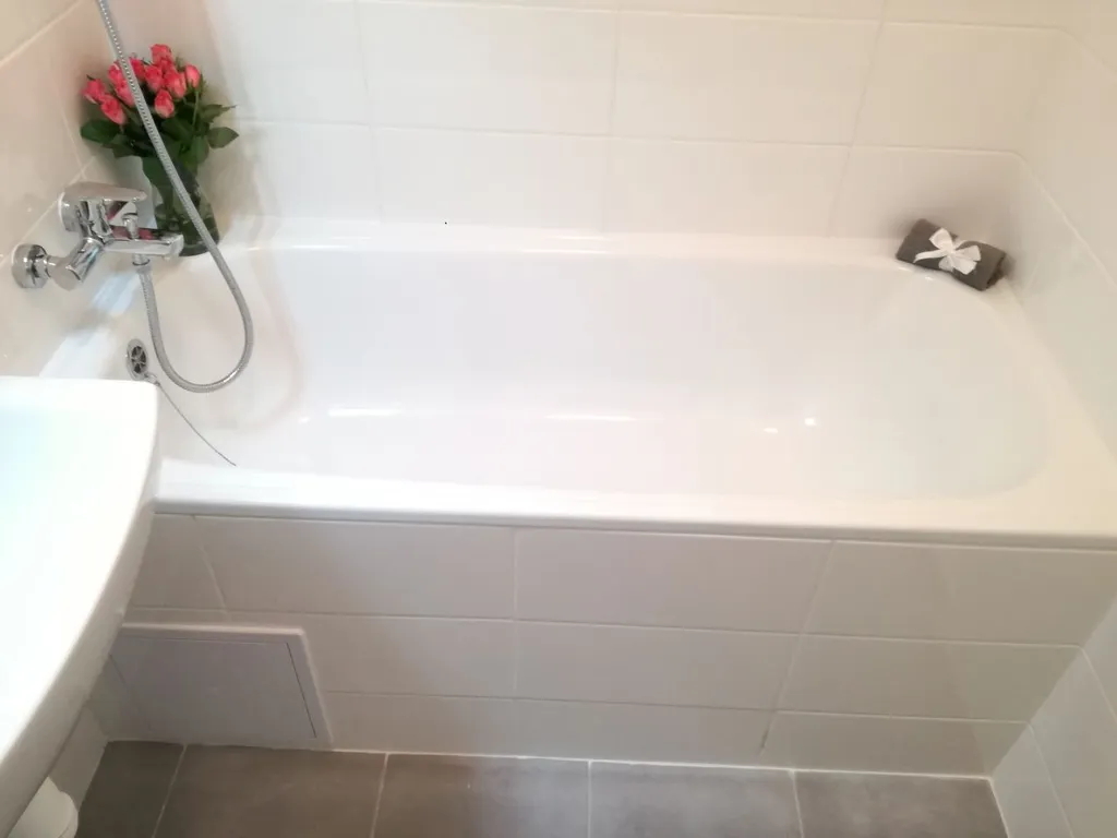 Byt má vyzděné jádro, podlahy, rozvody, omítky, interiérové dveře. Koupelna s vanou a umyvadlem, toaleta je odděleně. Kuchyňská linka je opatřena plynovým sporákem a elektrickou troubou a s možností připjení pračky.