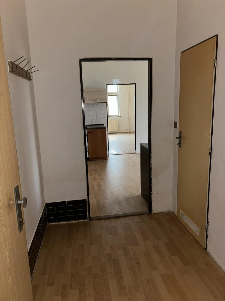 Pronájem 1+1 50,53m² s komorou a velkou sklepní kójí v cihlovém domu na ulici Západní . Velice klidná lokalita. Bytová jednotka v původním, ale zachovalém stavu. Umístěna v 1NP. Prostorná koupelna s oknem, vanou, umyvadlem a přípojkou na pračku. WC dohromady s koupelnou. Z čtvercové chodby vstupy do komory a koupelny. Pokoj průchozí s kuchyní. V kuchyní nová kuch.linka a nová plovoucí podlaha. Plynový sporák. Možnost trvalého bydliště. Teplo dálkově. Ohřev vody do vany a kuchyně karmou. Nájem 7.579,- + ( služby - SUV, teplo, osvětlení společných prostor, komíny = 2.300,- na 1 osobu ) + elektřina a plyn. Za každou další osobu 500,- Kč. Volný ihned. Pouze pro osoby bez zápisu registru exekucí . Vratná kauce 15.158,-Kč. Plus provize RK. Volný ihned
