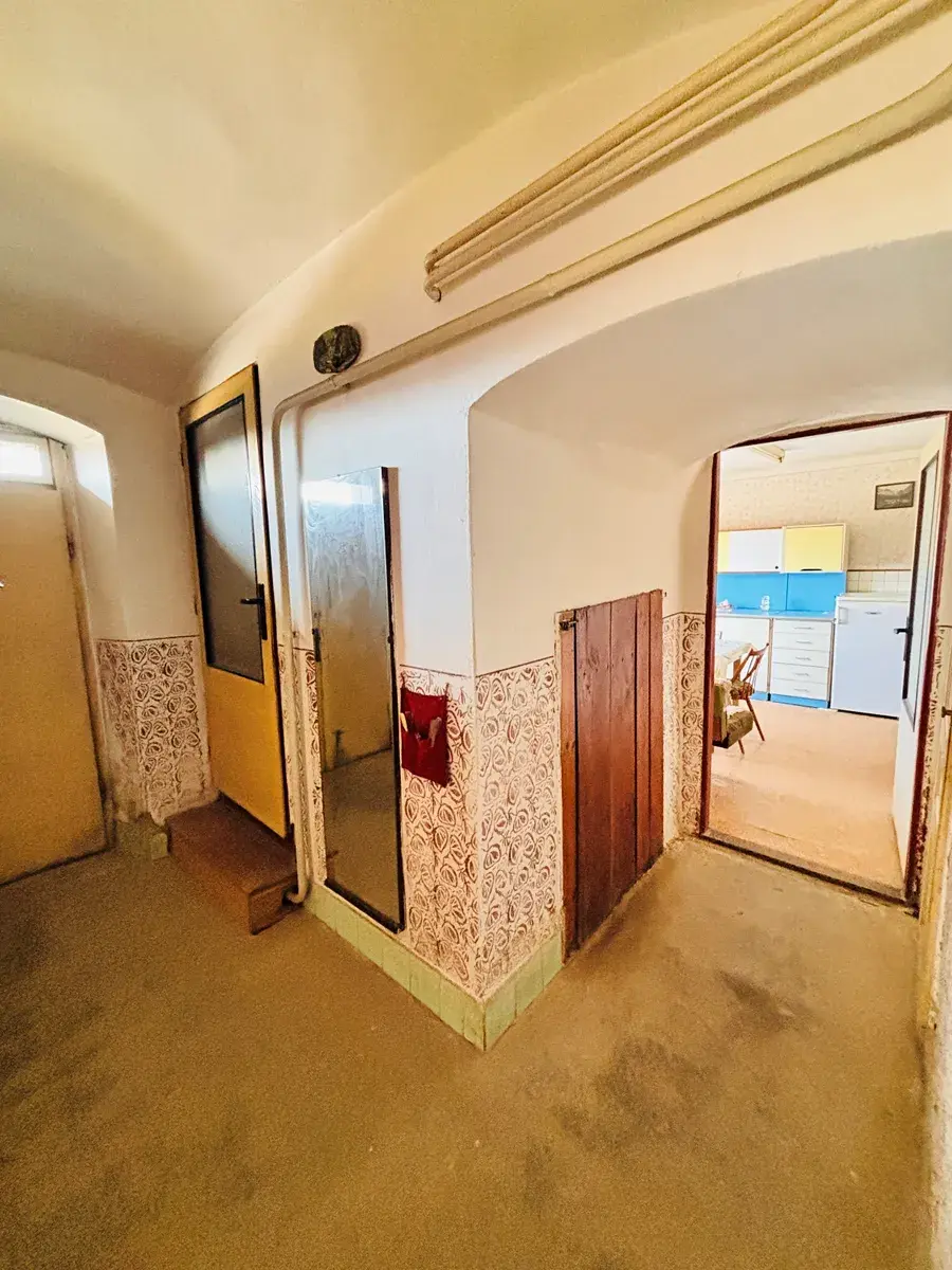 Jedná se o tradiční venkovské stavení o stávající dispozici 3+1 s půdním prostorem, kde se nachází ještě jeden samostatný pokoj. Zbývající část půdy nabízí další potenciál – rozšíření obytné části, pracovnu nebo praktické zázemí. Dům dále tvoří koupelna, samostatné WC, technická místnost a dřevěná veranda. Bonusem je zděná garáž u domu.