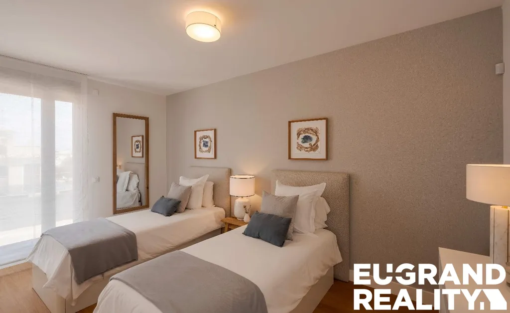 Dispozice domu zahrnuje 4 ložnice a 3 koupelny. Jedna ložnice se nachází v přízemí a je vhodná například jako pokoj pro hosty nebo pracovna. V patře jsou další tři ložnice, včetně hlavní ložnice s vlastní koupelnou a šatnou.