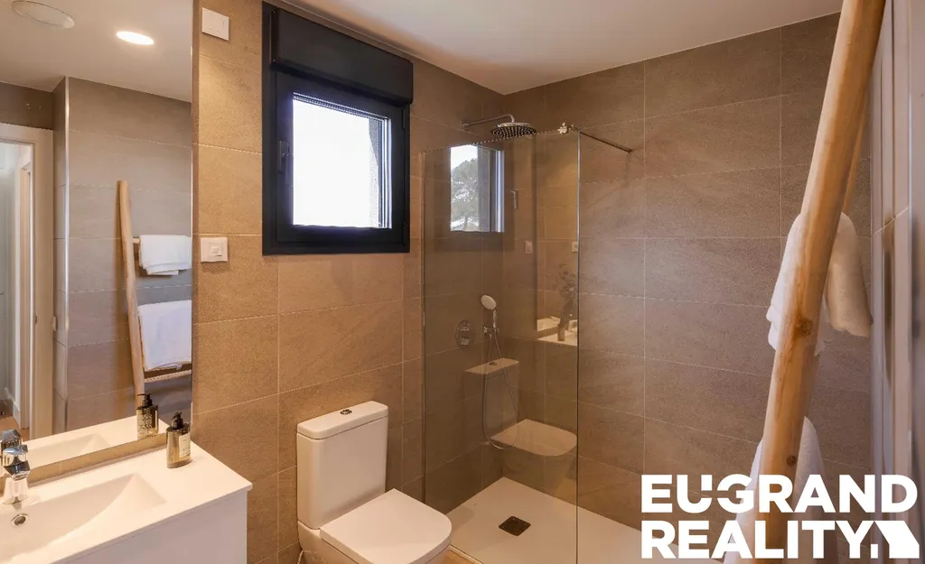Součástí nemovitosti je soukromý bazén, zahrada a garáž. Dům je vybaven klimatizací, bezpečnostními elektrickými roletami a prodává se kompletně zařízený.