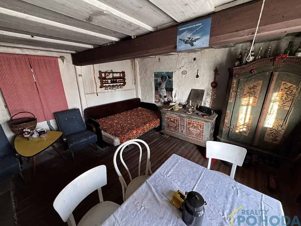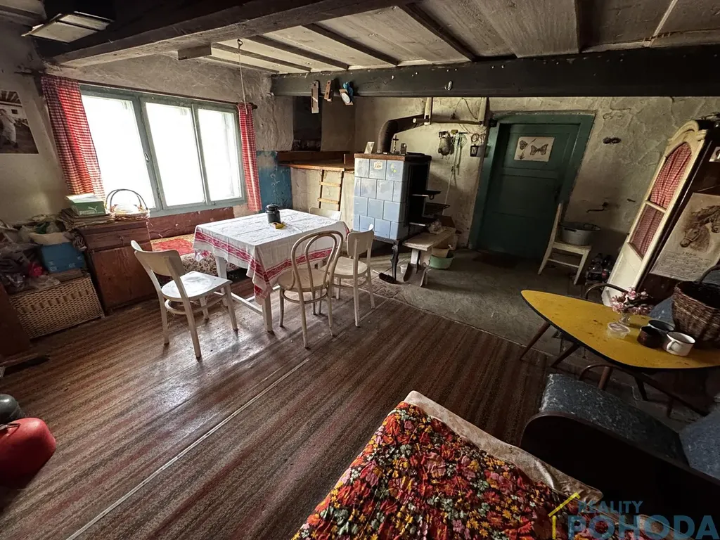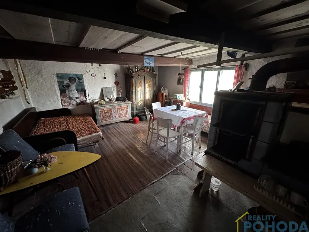 Malá chaloupka, kde se čas zastavil a vzpomínky visí ve vzduchu. Domek do L se zápražím, malým dvorkem a stodolou šeptají příběhy minulých generací. V obytné místnosti u kachlových kamen stojí lavička, jako by někdo právě vstal, a pohovka připomíná poobědní odpočinek, který tu kdysi patřil ke každodennímu životu. Tato chaloupka je výzvou pro ty, kdo mají představivost každý kout tu šeptá svůj příběh a čeká, až mu rekonstrukcí vdechnete nový život.