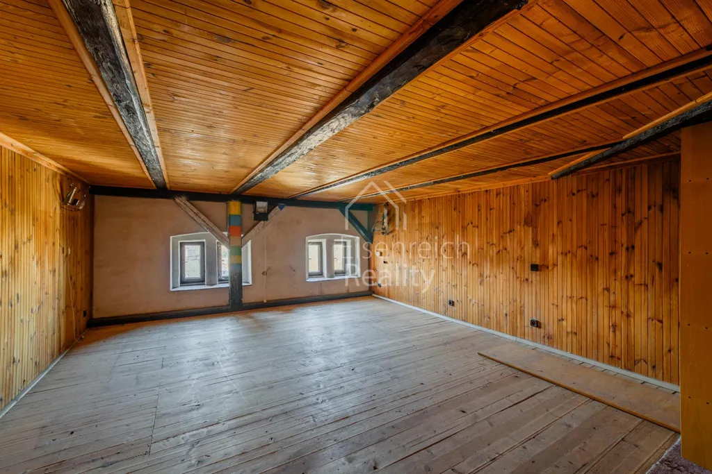 Velkou výhodou domu je prostorná půda o rozloze cca 180 m, která nabízí potenciál pro vestavbu dalších bytových jednotek a výrazné rozšíření obytné plochy.