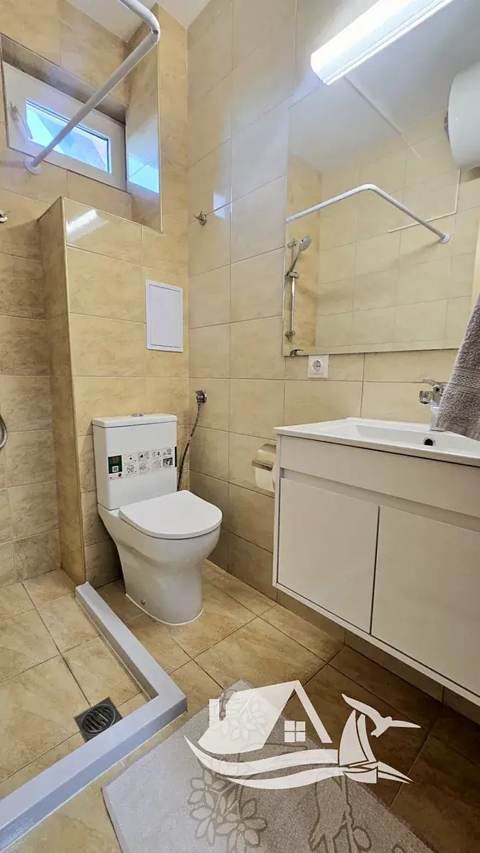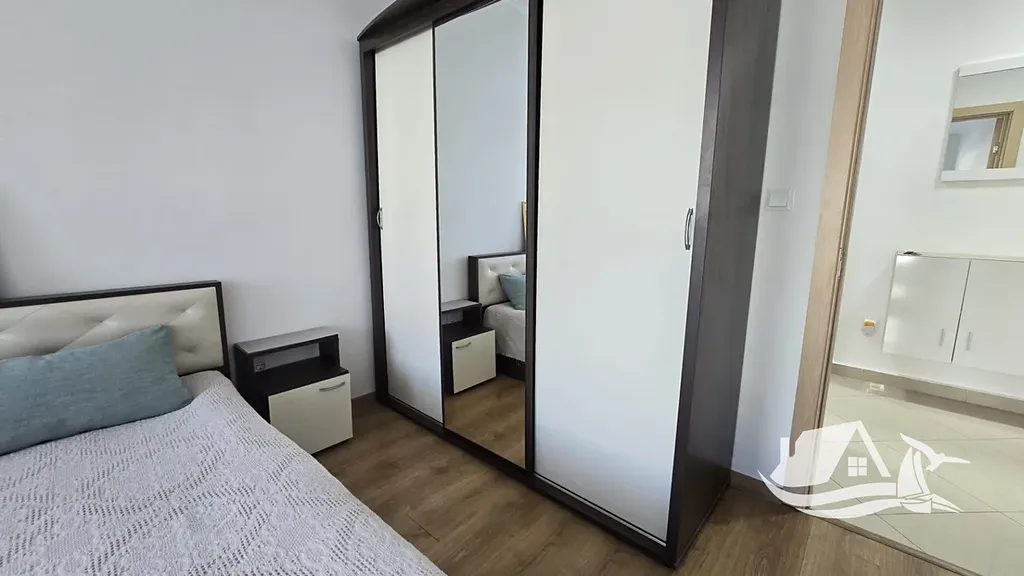 Byt se nachází ve třetím patře udržovaného domu a už při vstupu působí otevřeně a příjemně. Dispozice 2+kk je praktická a nadčasová, ideální pro pohodlné bydlení u moře i bezstarostné dovolené. Obytný prostor s kuchyňským koutem plynule navazuje na balkon, odkud se otevírá výhled na moře. Ložnice nabízí klid a soukromí a koupelna s oknem přináší přirozené světlo i lepší komfort každodenního užívání.