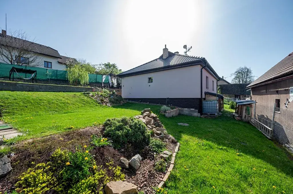 Předsíň. koupelna s vanou a WC, spíž, dva neprůchozí pokoje (15 m a 17 m), obývací pokoj s kuchyňským koutem, vstup na pochozí půdu s možností vestavby (1 větší nebo 2 menší pokoje). Díky půdnímu prostoru je zde potenciál pro rozšíření obytné části dle vašich potřeb.