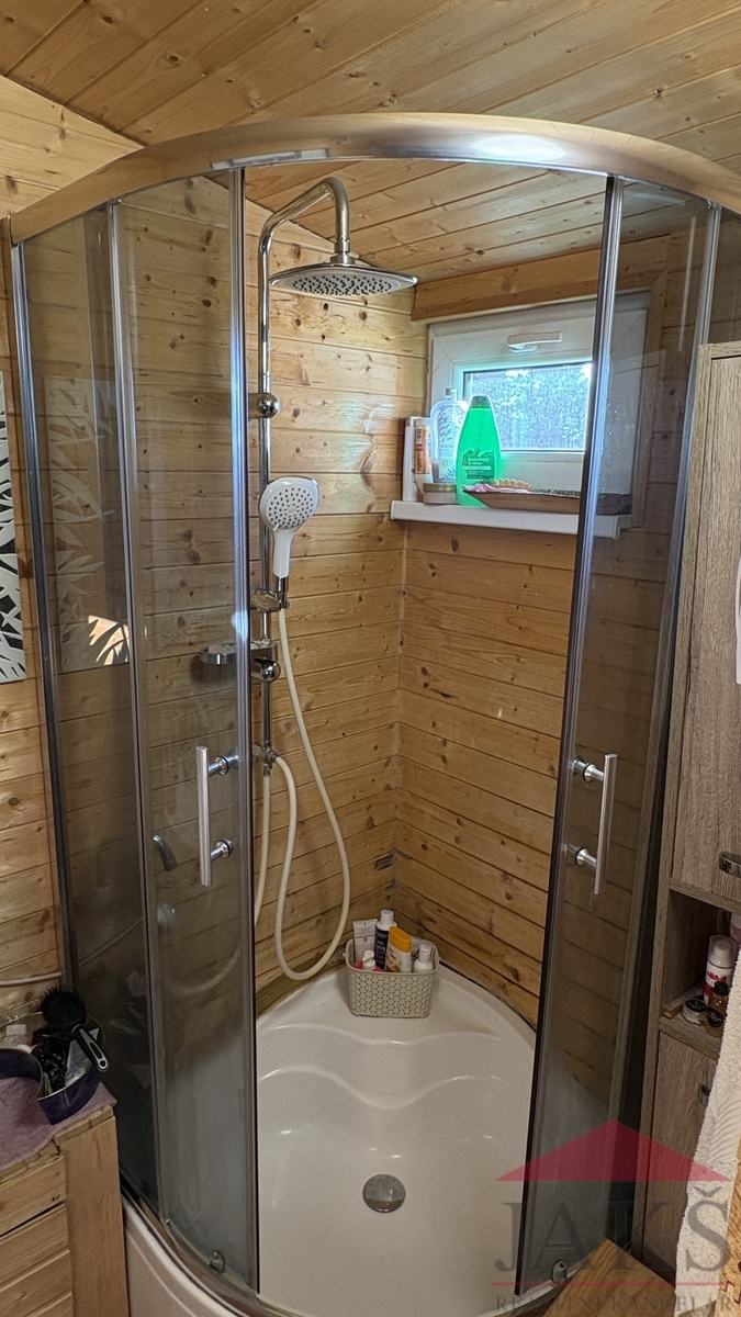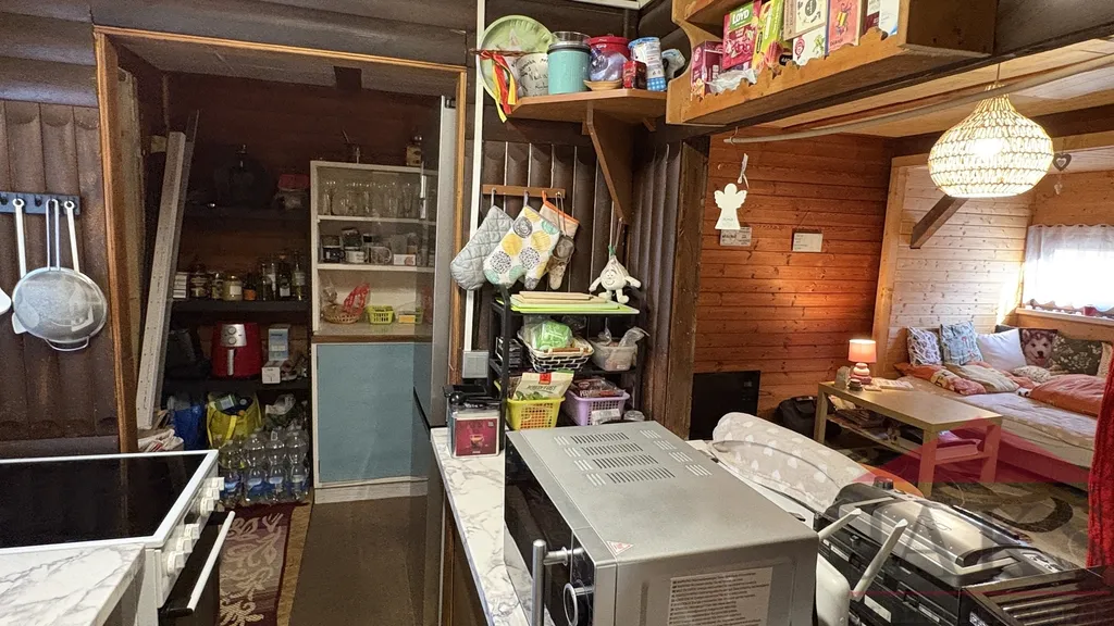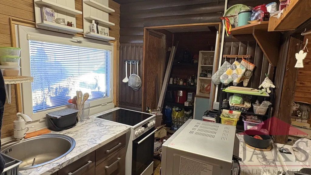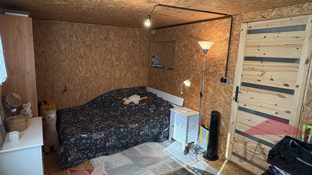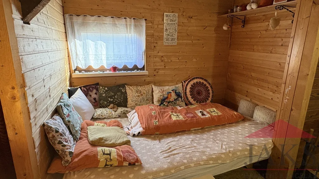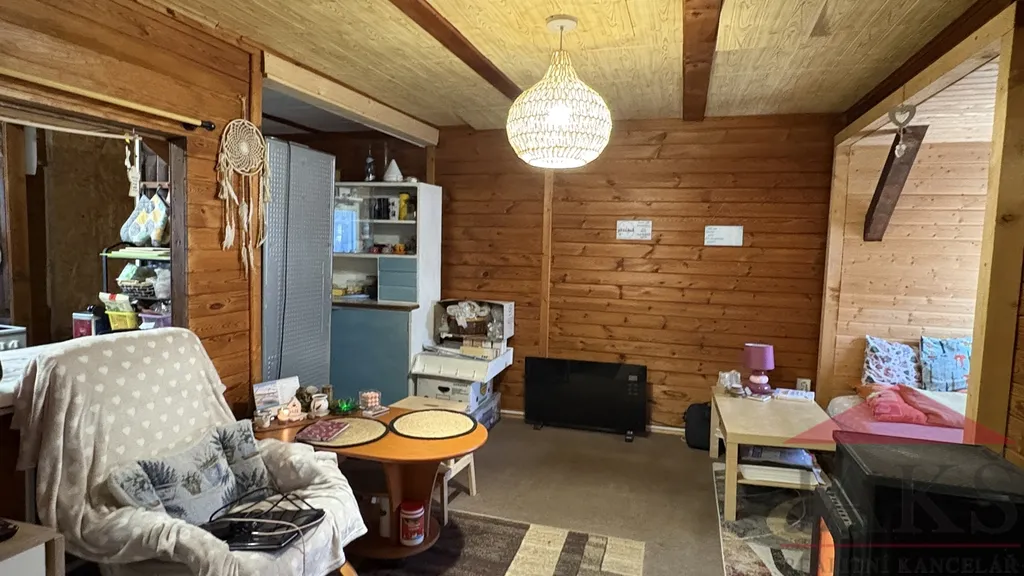 Popis: chodba (pračka a sušička), koupelna (umyvadlo se zrcadlem, sprchový kout, oddělené WC a el. boiler) s oknem, kuchyňský kout (kuch. linka s dřezem, HV troubou se sklo-ker. deskou, MV troubou a lednicí s mrazákem), obývací pokoj (kamna) se spacím koutem a ložnice. Prodej včetně veškerého vybavení vč. nábytku.