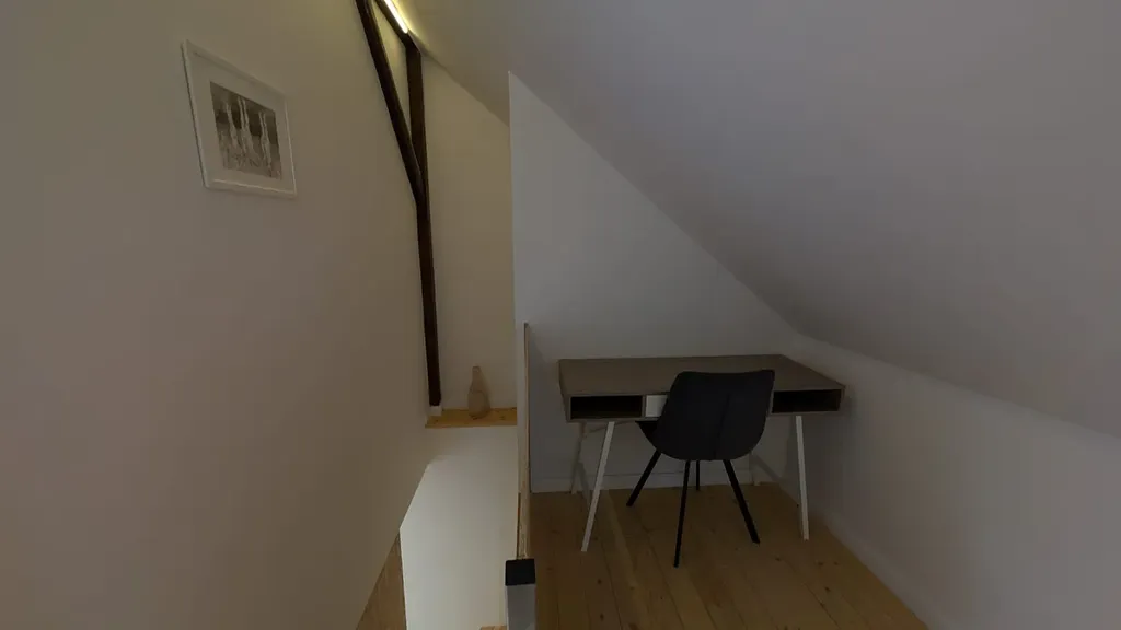 Byt prošel kompletní rekonstrukcí v roce 2023 a nabízí moderní, funkční a příjemné bydlení. Vytápění i ohřev teplé vody jsou řešeny elektrickým kotlem. Dispozičně je řešen jako dvoupodlažní – spodní část tvoří prostorný otevřený obytný prostor s kuchyní a jídelnou, koupelna s vanou a samostatná ložnice. V horním patře se nacházejí dvě ložnice a koupelna se sprchovým koutem.