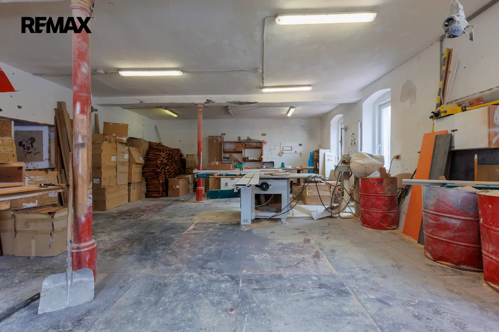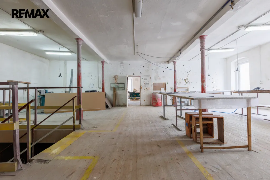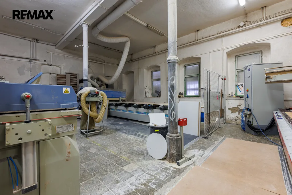 Druhou nemovitostí je rozsáhlý nepodsklepený objekt se třemi nadzemními podlažími, sedlovou střechou a půdním prostorem, který je v současnosti plně využíván k podnikatelské činnosti.