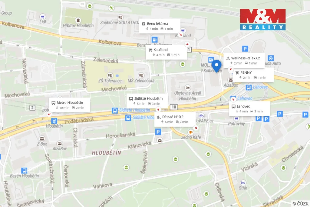 Velkou výhodou bytu je výborná dopravní dostupnost - tramvajová zastávka Lehovec a metro B Hloubětín. V okolí se nachází kompletní občanská vybavenost.