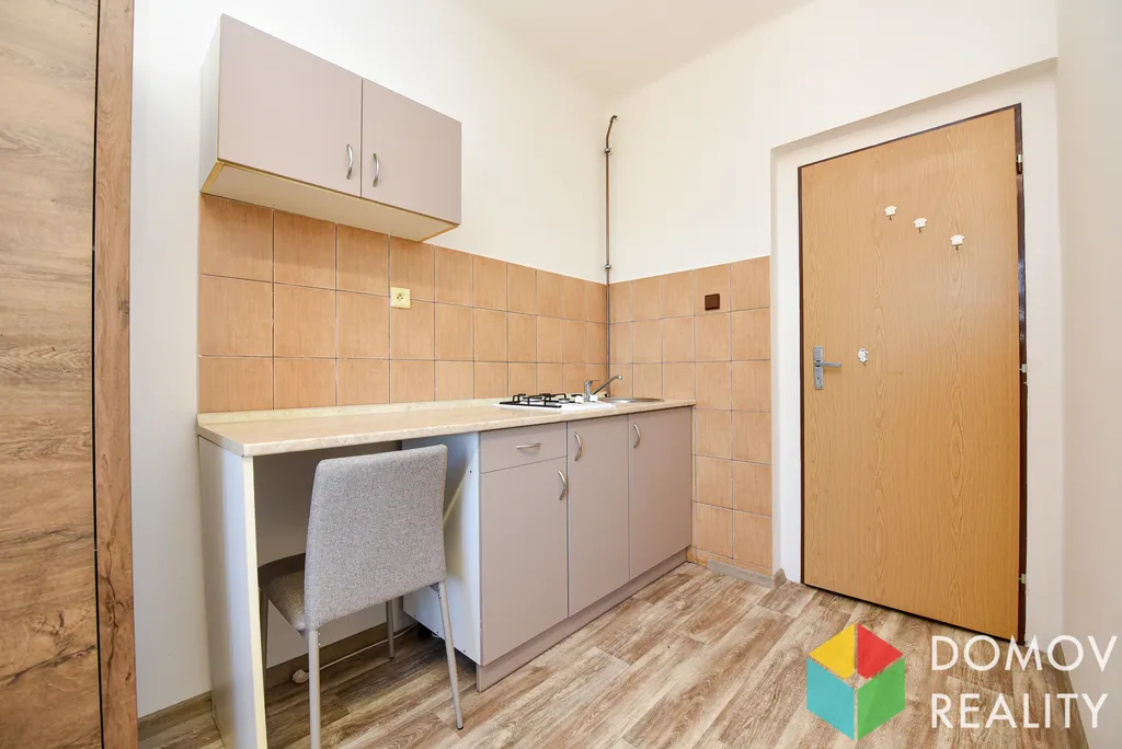 Pokoj je určen pro jednu osobu. Výhodou je vlastní kuchyňka přímo na pokoji. Cena činí 9 000,- Kč měsíčně a zahrnuje veškeré poplatky a energie. Koupelna je sdílená s ostatními pokoji v patře.