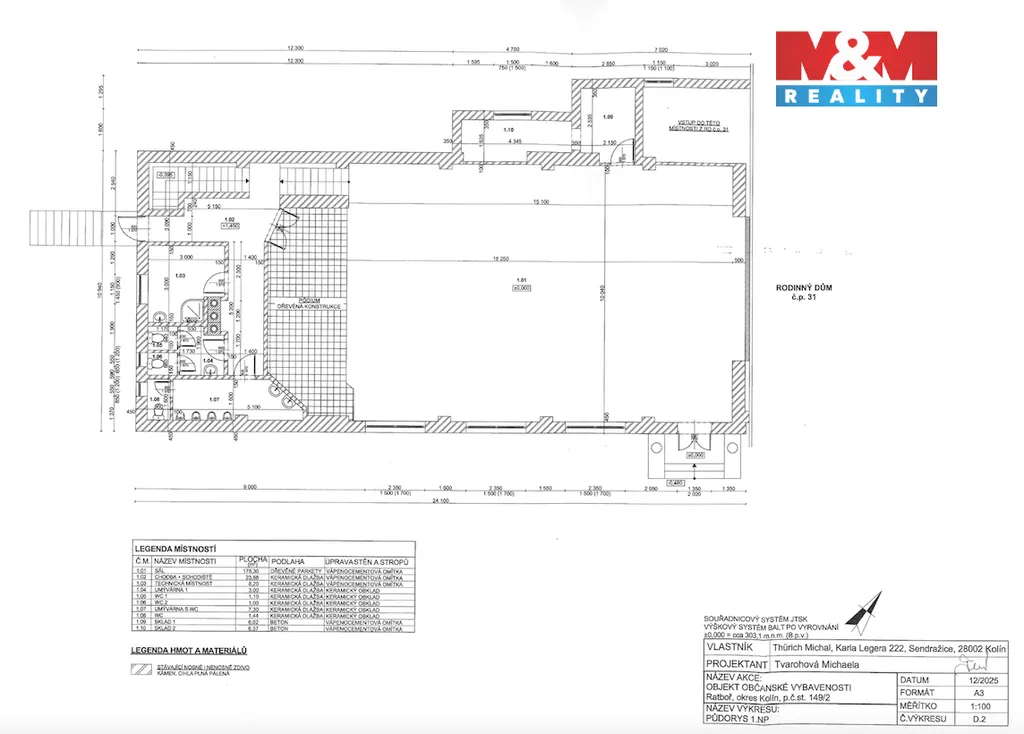 Nabízíme k prodeji jedinečný komerční objekt s rozmanitými možnostmi využití, ideální pro podnikání či investici. Nemovitost je určena k rekonstrukci a nachází se na okraji obce Ratboř, pouhých 7 km od Kolína. Nabízí výbornou dostupnost i bezproblémové parkování a to na vlastním pozemku 87m² nebo na obecním. Stavba občanského vybavení, postavena přibližně před 100 lety byla průběžně rekonstruována a rozšiřována. Budova je zděná z cihel i kamene, což jí dodává unikátní historický ráz. Objekt je napojen na veřejný vodovod, elektřinu a má vlastní jímku. K dispozici je rozsáhlý sál s pódiem cca 180m², skladové prostory, toalety, umývárny, technické zázemí. Vytápění krbem nebo kotlem na tuhá paliva rozvedeno do radiátorů. Využijte této mimořádné příležitosti a kontaktujte nás pro více informací!
